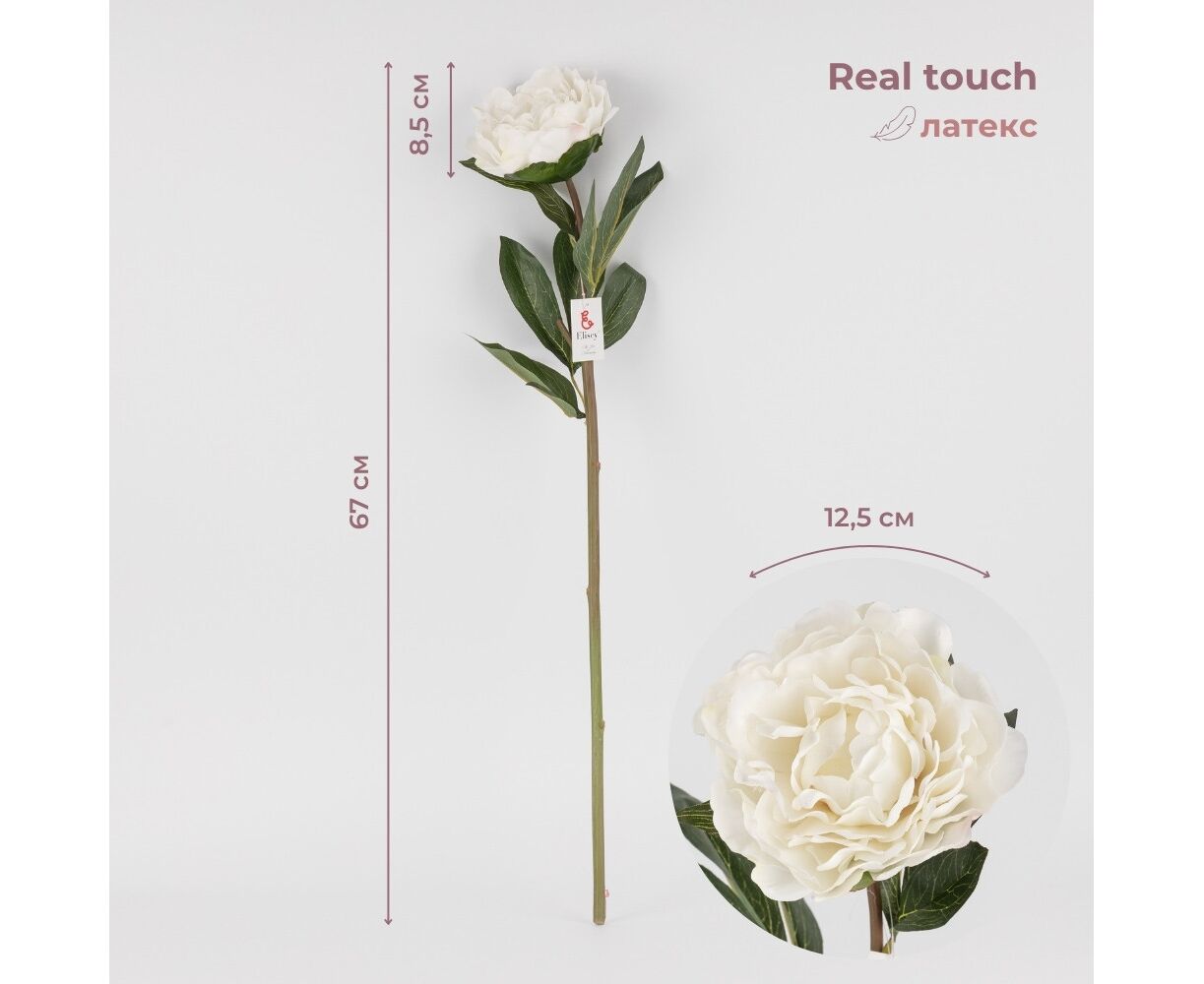 Искусственные пионы с эфектом живого прикосновения, белые, 67 см