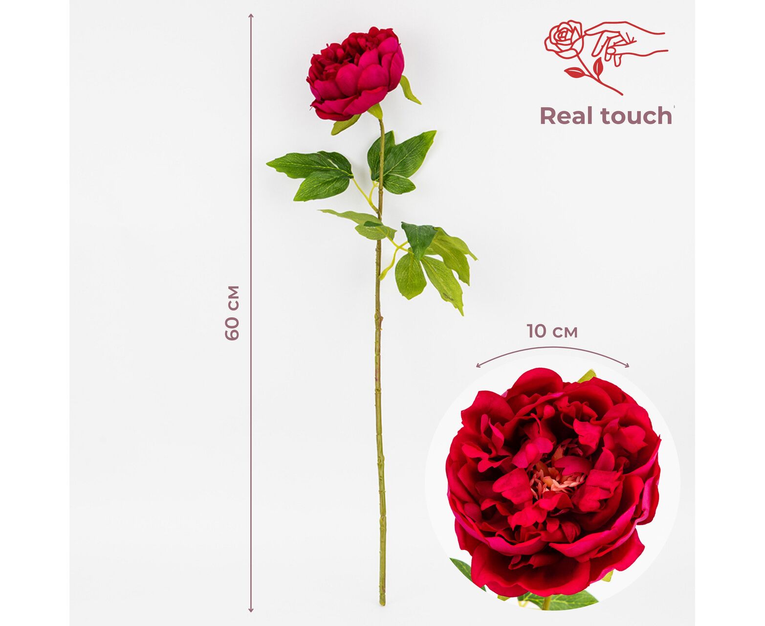 Искусственный пион с эффектом живого прикосновения, розовый, 60 см