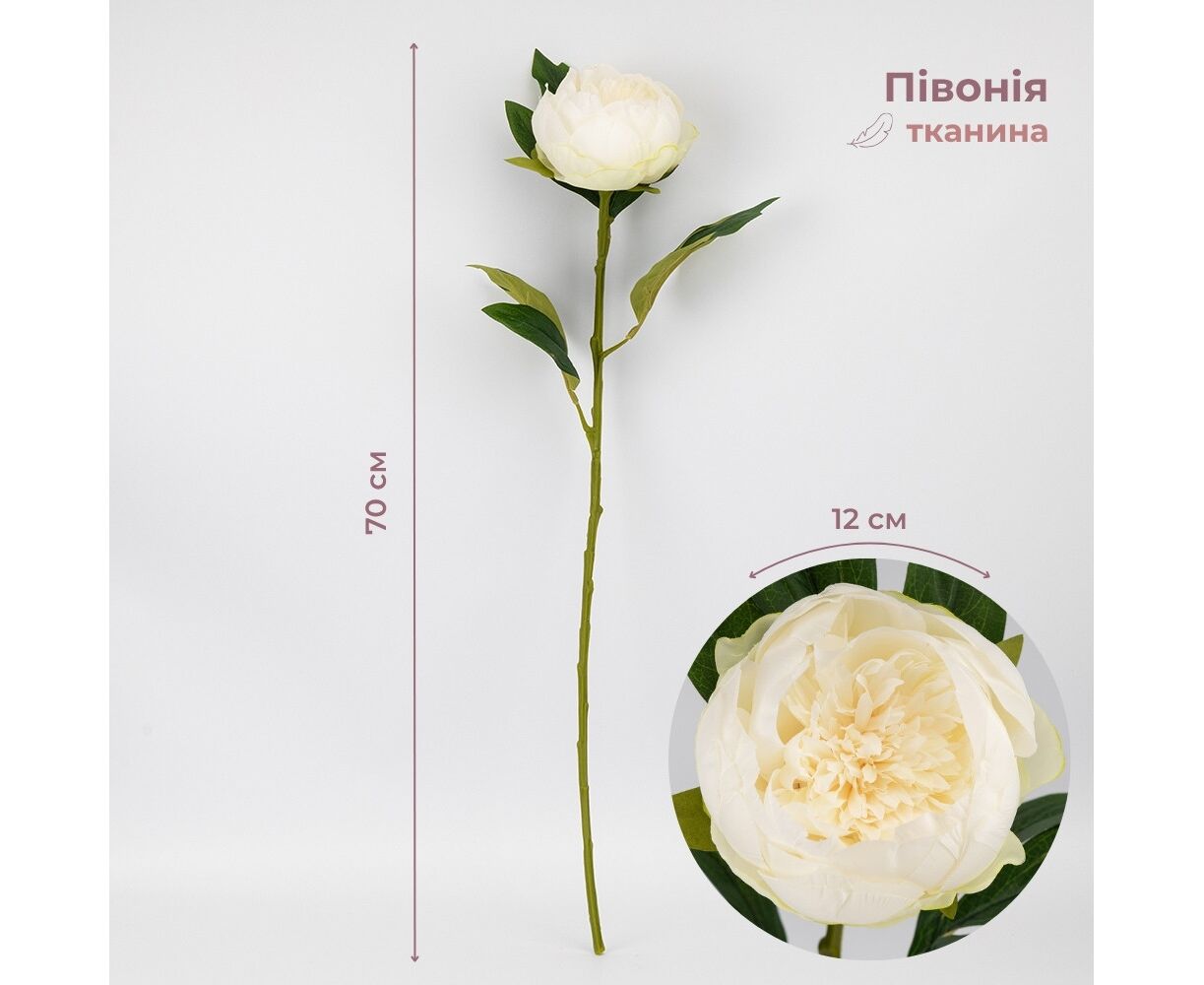 Искусственный пион, белый, 70 см