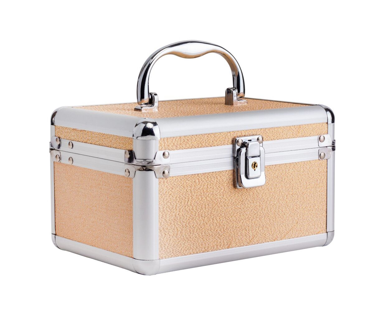 Упакована в белую картонную коробку. Ящик изготовлен из кожзама и металла, закрывается на замок, имеет удобную металлическую ручку и ключ. Кейс-ящик станет оригинальным и действительно необходимым подарком для девочек всех возрастов, ведь каждая хочет хорошо хранить косметику, аксессуары и важные мелочи. Это также прекрасный вариант для хранения всего необходимого для визажистов, ведь ящик имеет удобную металлическую ручку и достаточное количество отделений.
