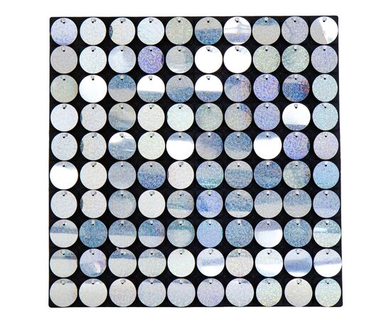 Панель с пайетками для фотозоны (30*30см, 100 паеток). На панели есть отверстия для крепления ее к основанию (стене, каркасу). Поверхность панели состоит из паеток, которые находятся в постоянном движении от любого движения воздуха, при этом пайетки ярко переливаются и создают яркий эффект. Панели с пайетками можно использовать для оформления фотозон, праздников, рекламных стендов. Конструкция разработана так, что яркость и блеск паеток не останутся без внимания.