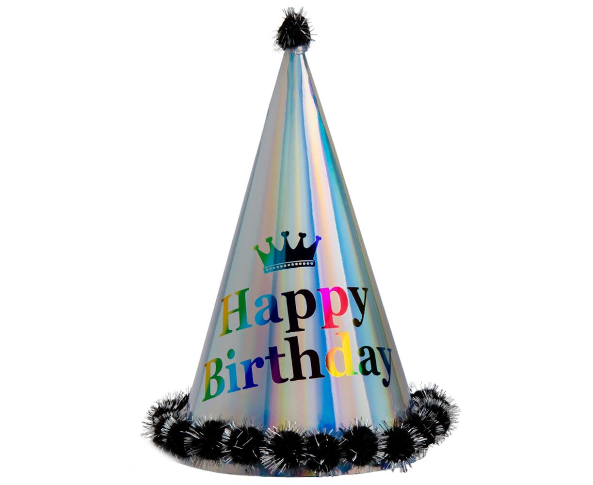 Диаметр колпака – 16 см, высота – 24 см. Изготовлен из прочной бумаги. В наборе есть удобные крепежные канатики. Праздничный колпак на день рождения – это веселый аксессуар, придающий особый шарм и радостное настроение в праздничную атмосферу. Он способен привлечь внимание и сделать владельца этого замечательного аксессуара непревзойденным центром внимания на праздновании дня рождения.