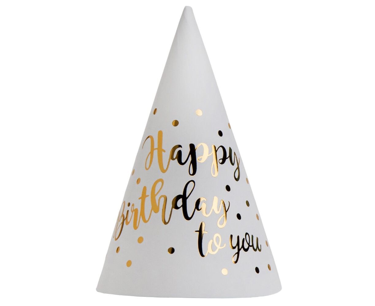 Набор колпаков "Happy Birthday", 6 шт, белый, 20 см YOO-HOO!