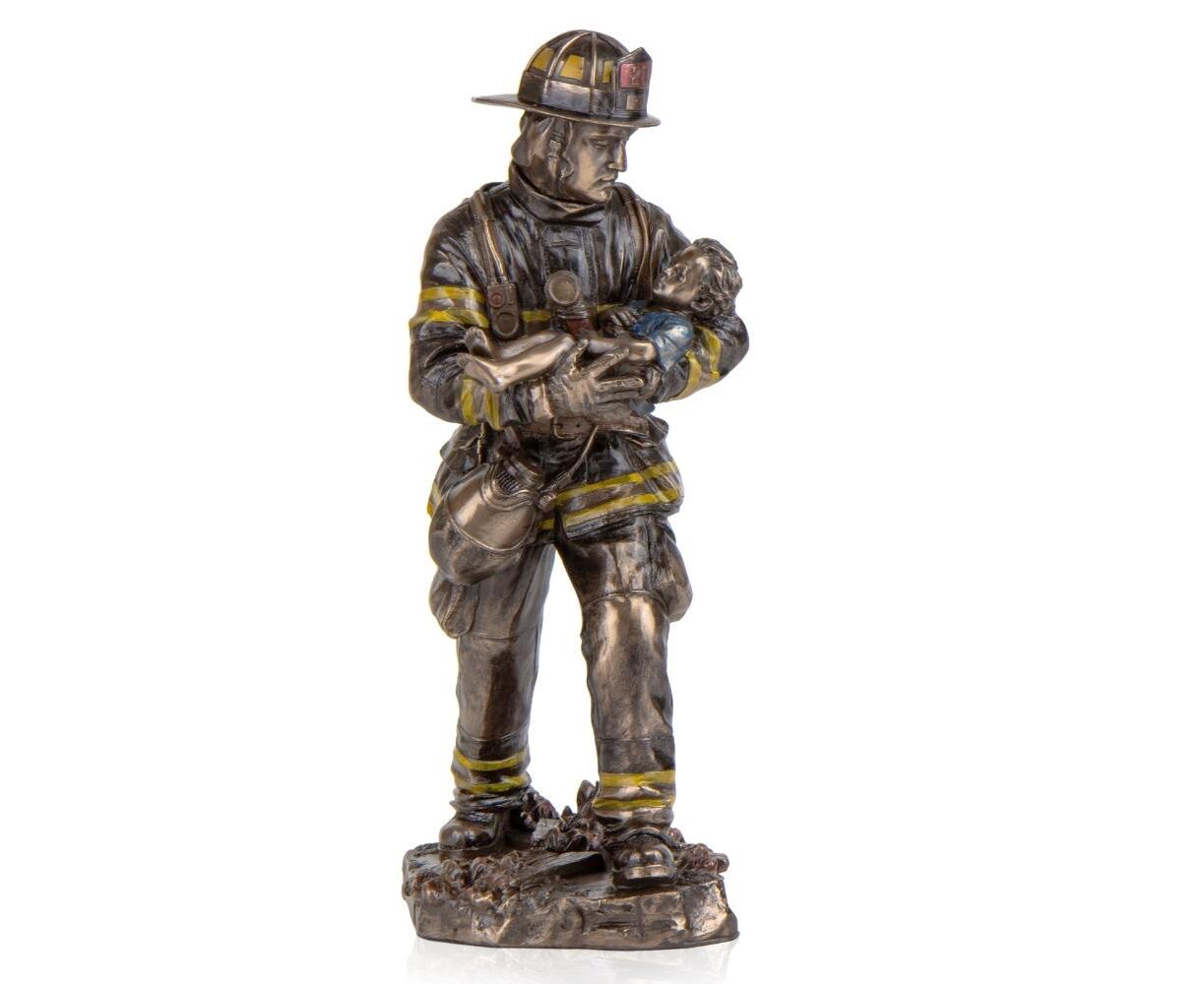 Статуэтка Веронезе «Пожарный» может стать отличным подарком для пожарных или ветеранов пожарной охраны. Он может символизировать благодарность за службу, мужество и преодоление невзгод. Статуэтка выполнена из полистоуна (искусственного камня) и покрыта бронзовым покрытием. Упакован в красивую подарочную коробку. Поэтому, покупая эту статуэтку, вы получаете ценный и красивый подарок, не требующий сложения. Благодаря надежной внутренней упаковке, изготовленной из пенопласта с углублениями для мельчайших деталей, вы можете быть уверены в сохранности при транспортировке. Высота статуэтки 27 см, ширина 10 см, длина 12,5 см. VERONESE