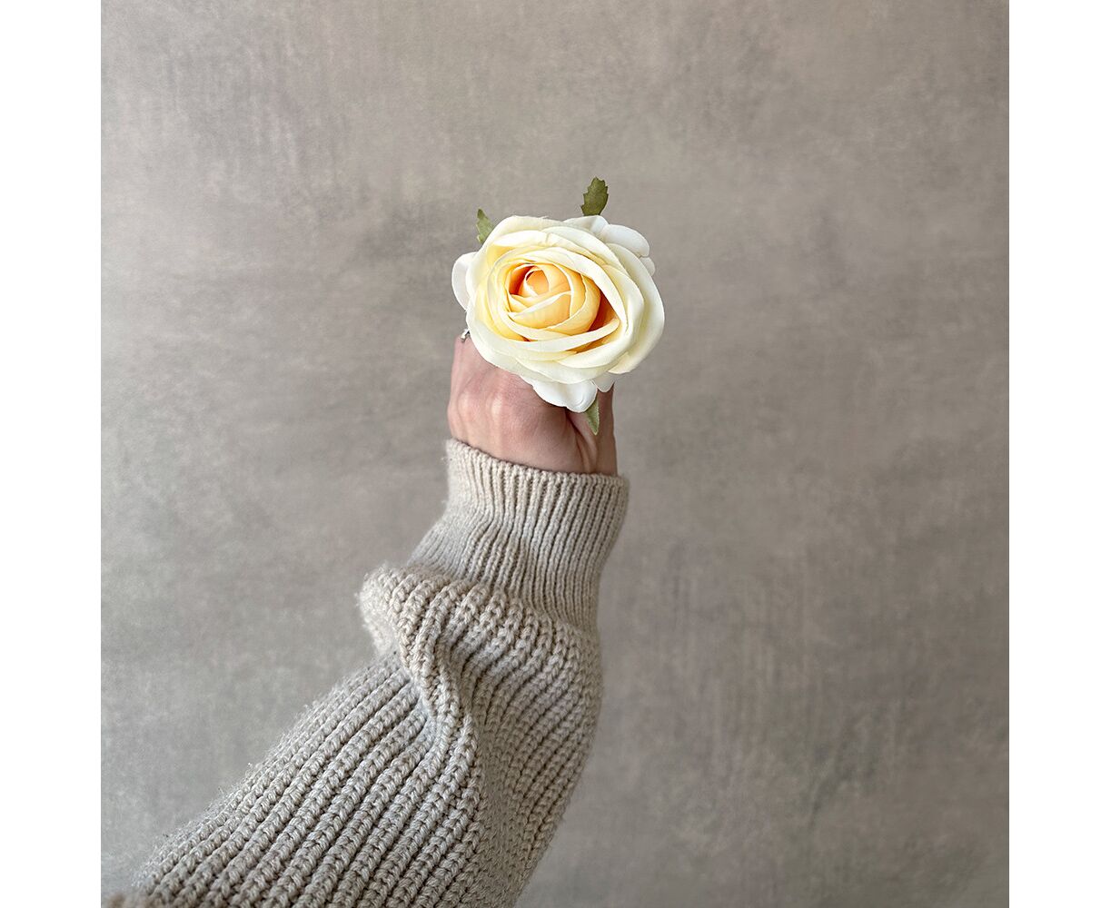 Диаметр – 6,5 см, высота – 7 см. Искусственная розовая головка с реалистичной текстурой и естественными изгибами лепестков идеально подходит для оформления интерьеров, свадебных композиций и витрин. Цветок изготовлен из высококачественной ткани, листьев из такого же материала, а хвостик стебля – из пластика, что облегчает монтаж. Благодаря компактным размерам, эта модель гармонично впишется во флористическую композицию или декор в стиле horeca. Надежный крепеж обеспечивает удобство в использовании.