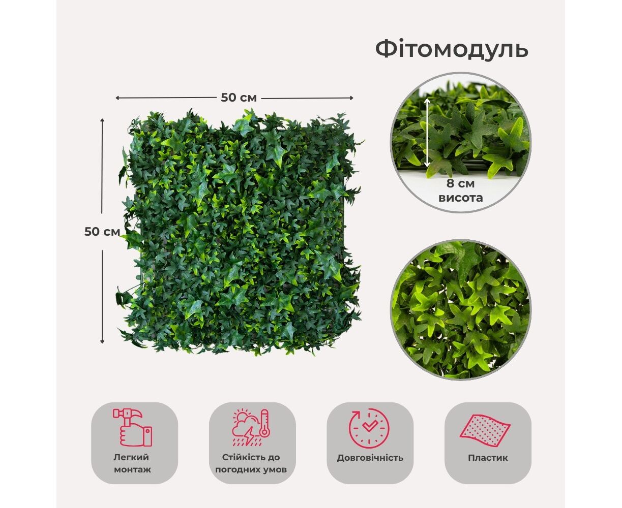Декоративная панель из искусственной зелени "Плющ", 50*50 см