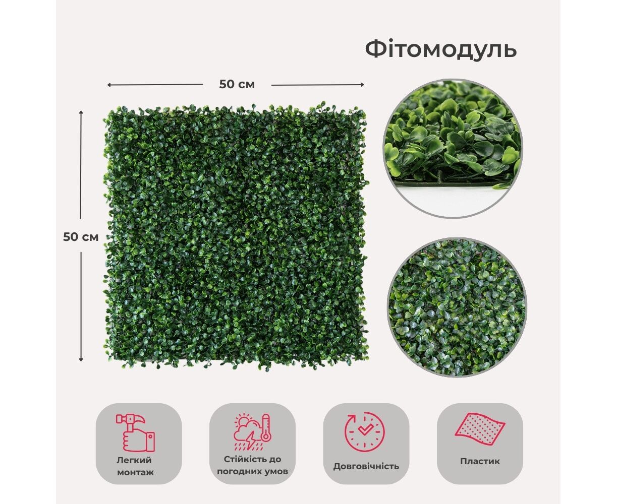 Фитомодуль искусственный "Самшит", 50*50 cм