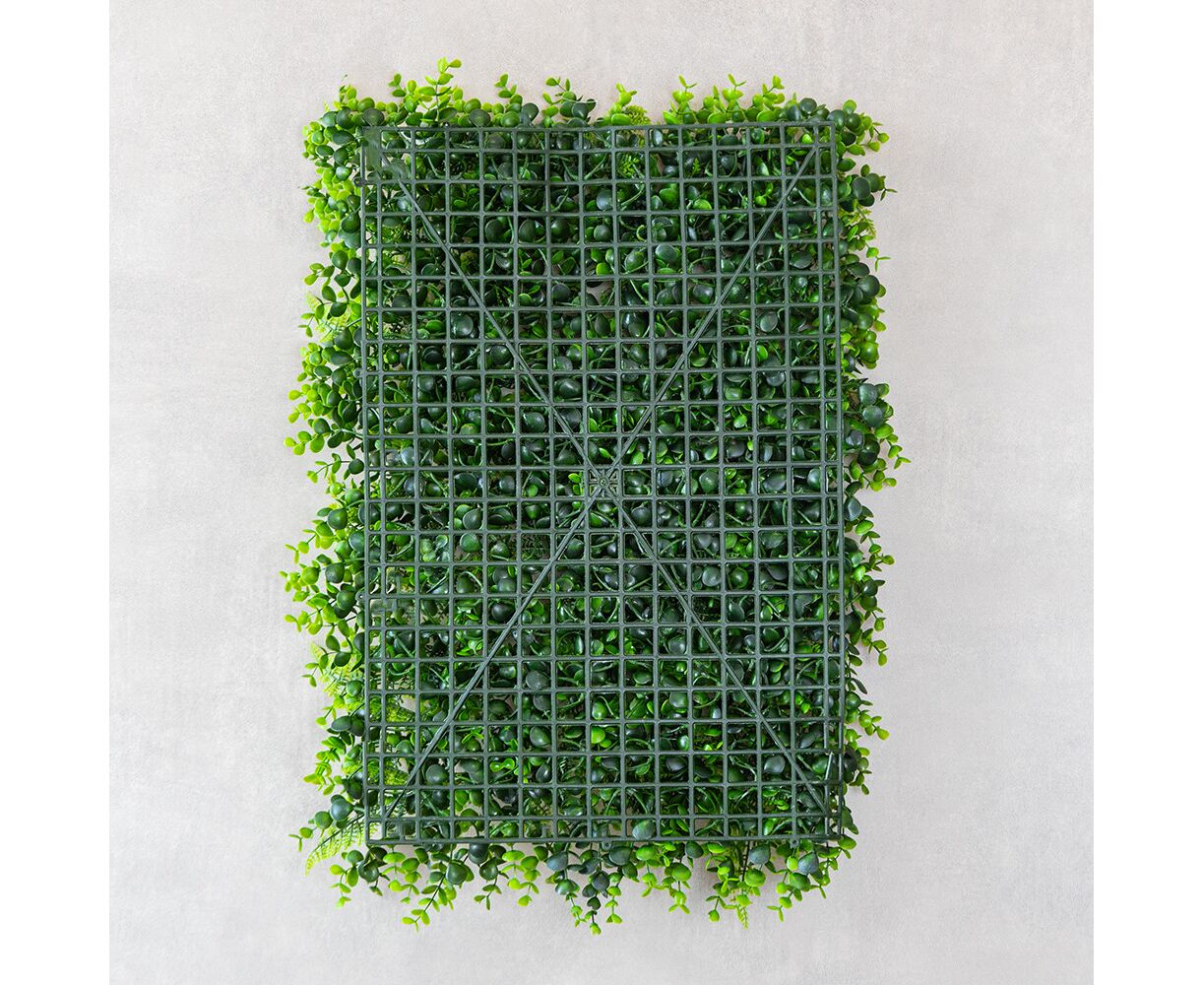 Длина панели – 60 см, ширина – 40 см, высота – 7 см. Декоративная панель из искусственной зелени – стильное решение для вертикального или горизонтального озеленения любого пространства. Реалистичные листья разных оттенков и текстур создают эффект живой растительности, придавая интерьеру свежести и природной гармонии. Фитомодуль имеет крепкую пластиковую основу с клипсами по краям, благодаря чему несколько элементов легко соединяются между собой в большую зеленую стену. Подходит для оформления интерьеров, витрин, фотозон, террас, зон отдыха, кафе, ресторанов и офисов. Может использоваться в помещении или на улице под накрытием, не требует ухода, не выцветает и сохраняет цвет в течение длительного времени. Идеальный вариант для тех, кто хочет создать атмосферу природы без усилий.
