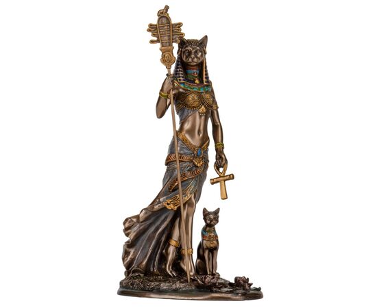 Высота статуэтки - 31 см, длина - 15 см, ширина - 10 см. Статуэтка Veronese изготовлена из полистоуна (искусственного камня) и покрыта бронзовым напылением. Бастет – это богиня в древнеегипетской мифологии, которая известна своей защитной и целебной силой, а также ассоциируется с кошками и высшими аспектами женской природы. Статуэтка Бастет изображает женщину с головой кошки, символизирующую ее власть над животными и ее защиту. Она держит в руках амулеты, указывающие на ее целебную силу и мудрость. Статуэтка Бастет может быть прекрасным подарком для тех, кто ценит и уважает кошек, а также любителей древнеегипетской мифологии и культуры. Она может служить символом защиты и благополучия в доме, а также объектом для декорирования и эстетического удовлетворения. Упакована в красивую подарочную коробку. Поэтому, покупая эту статуэтку, Вы получаете ценный и красивый подарок, который не требует дополнения. Благодаря надежной внутренней упаковке, изготовленной из пенопласта с углублениями для мельчайших деталей, Вы можете быть уверены в безопасности при транспортировке. VERONESE