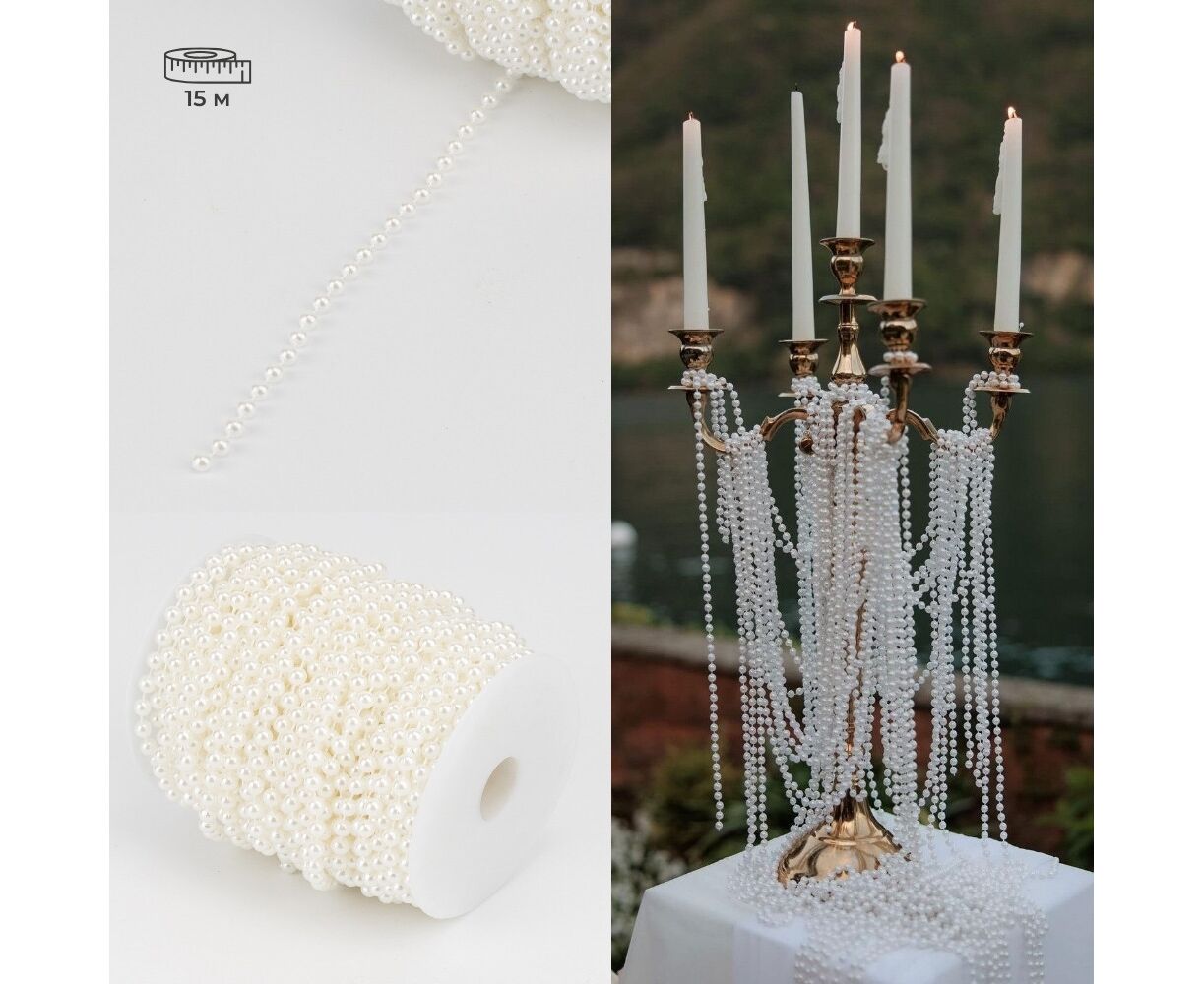 Декоративная гирлянда из жемчужин — стильный элемент для праздничного оформления и интерьерного декора. Она идеально подходит для украшения свадьбы, дня рождения, фотозоны, праздничного стола или витрины. Гирлянда легко режется на отрезки нужной длины и гармонично сочетается с цветочными композициями, свечами, текстилем и другими элементами декора. Это универсальное решение, которое добавляет утончённости любому празднику или интерьеру.