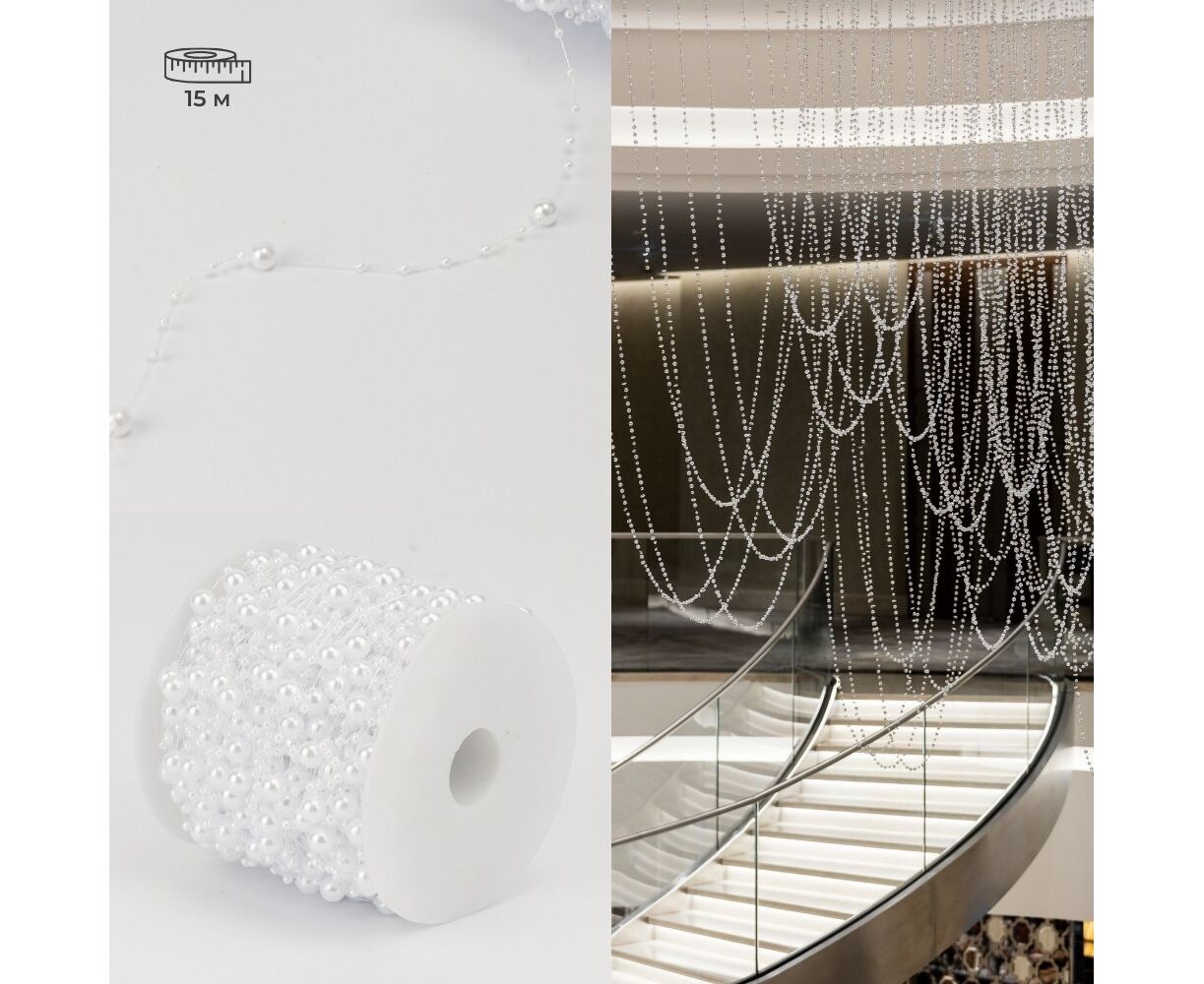 Гирлянда из бусин на леске, белая, 15 м