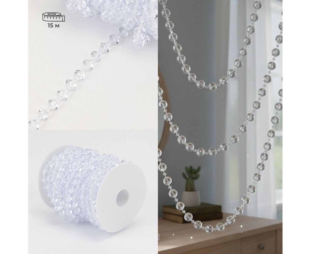 Гирлянда из кристаллов, прозрачная, 15 м