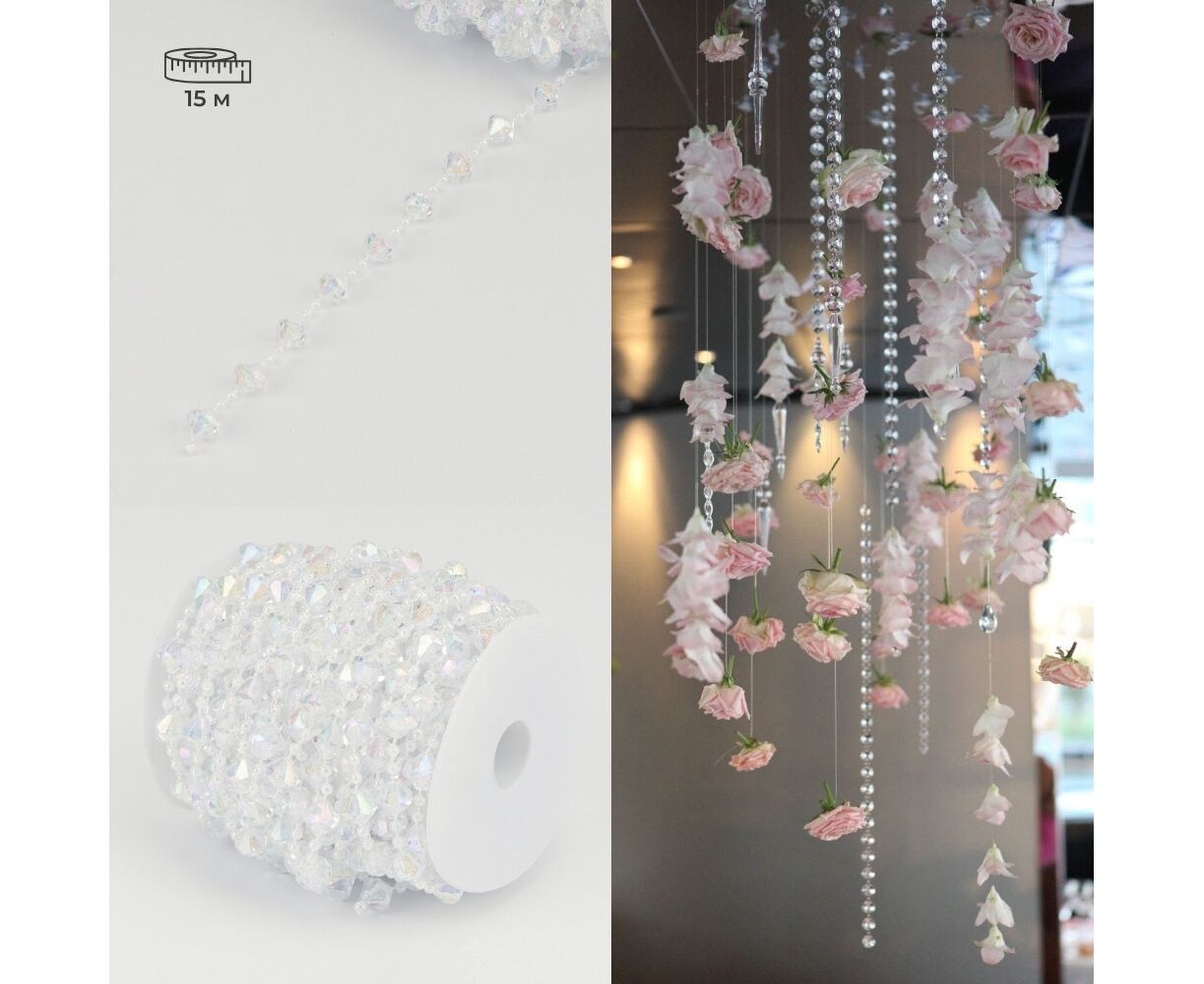Гирлянда из кристаллов, прозрачная с переливами, 15 м