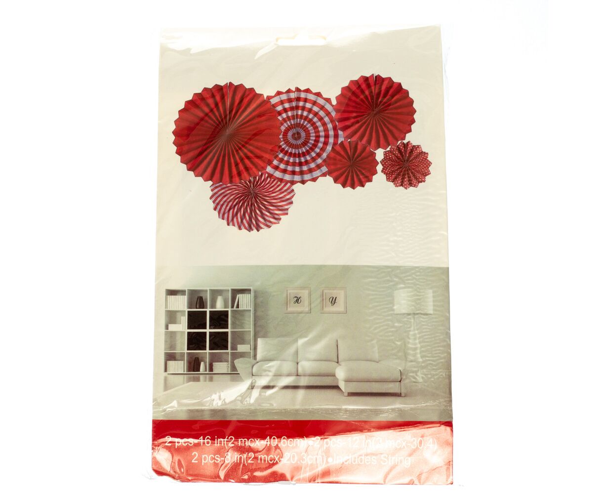 Набор з 6 бумажных вееров , красный