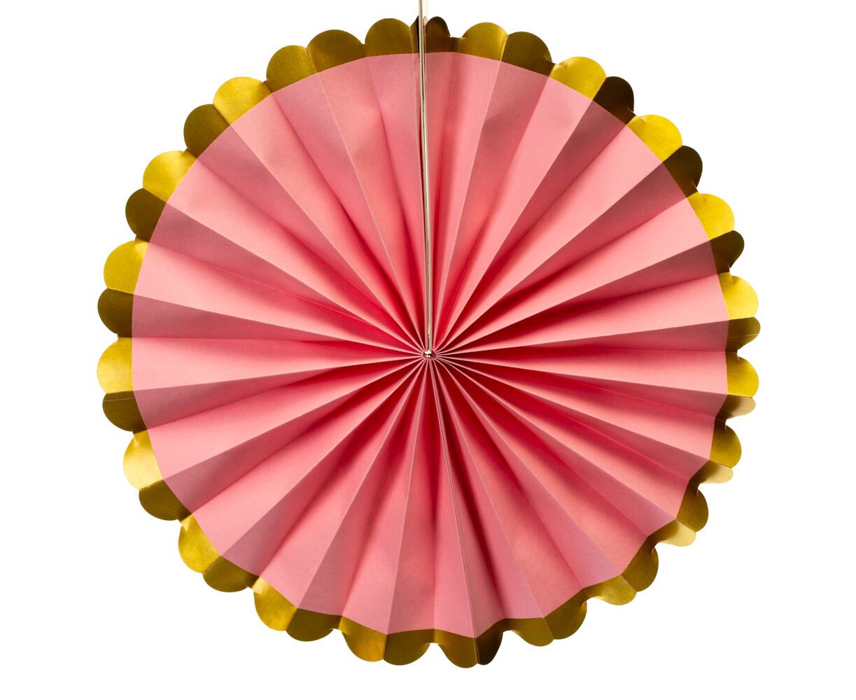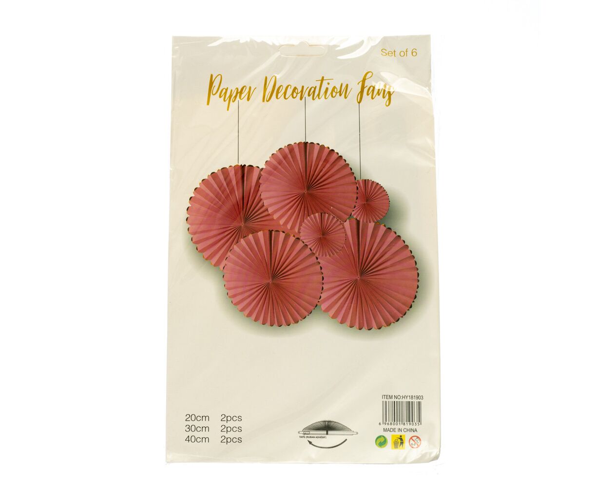 Набор з 6 бумажных вееров , розовый з золотой окантовкой