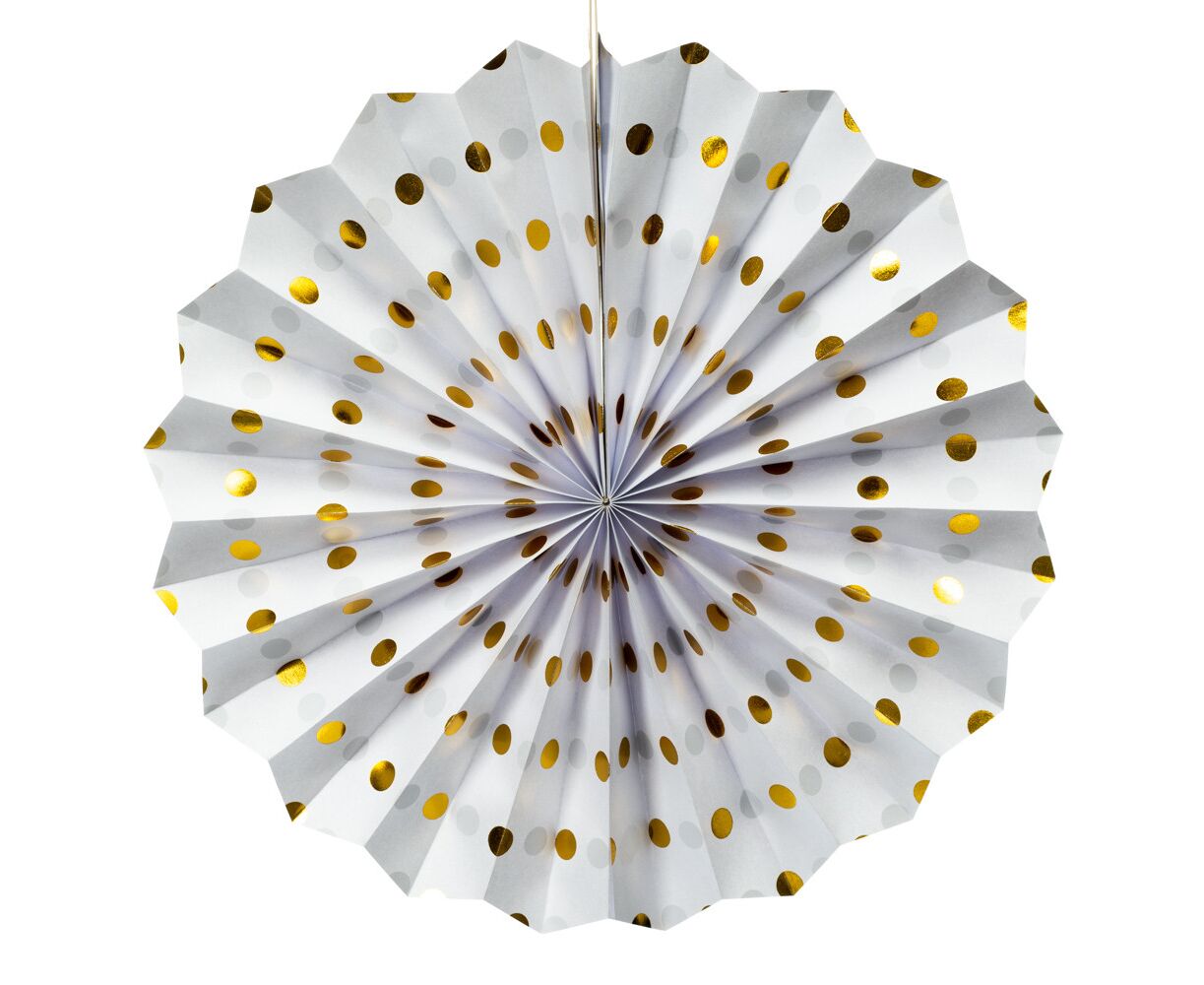 Набор з 8 бумажных вееров ,белый в золотой горох