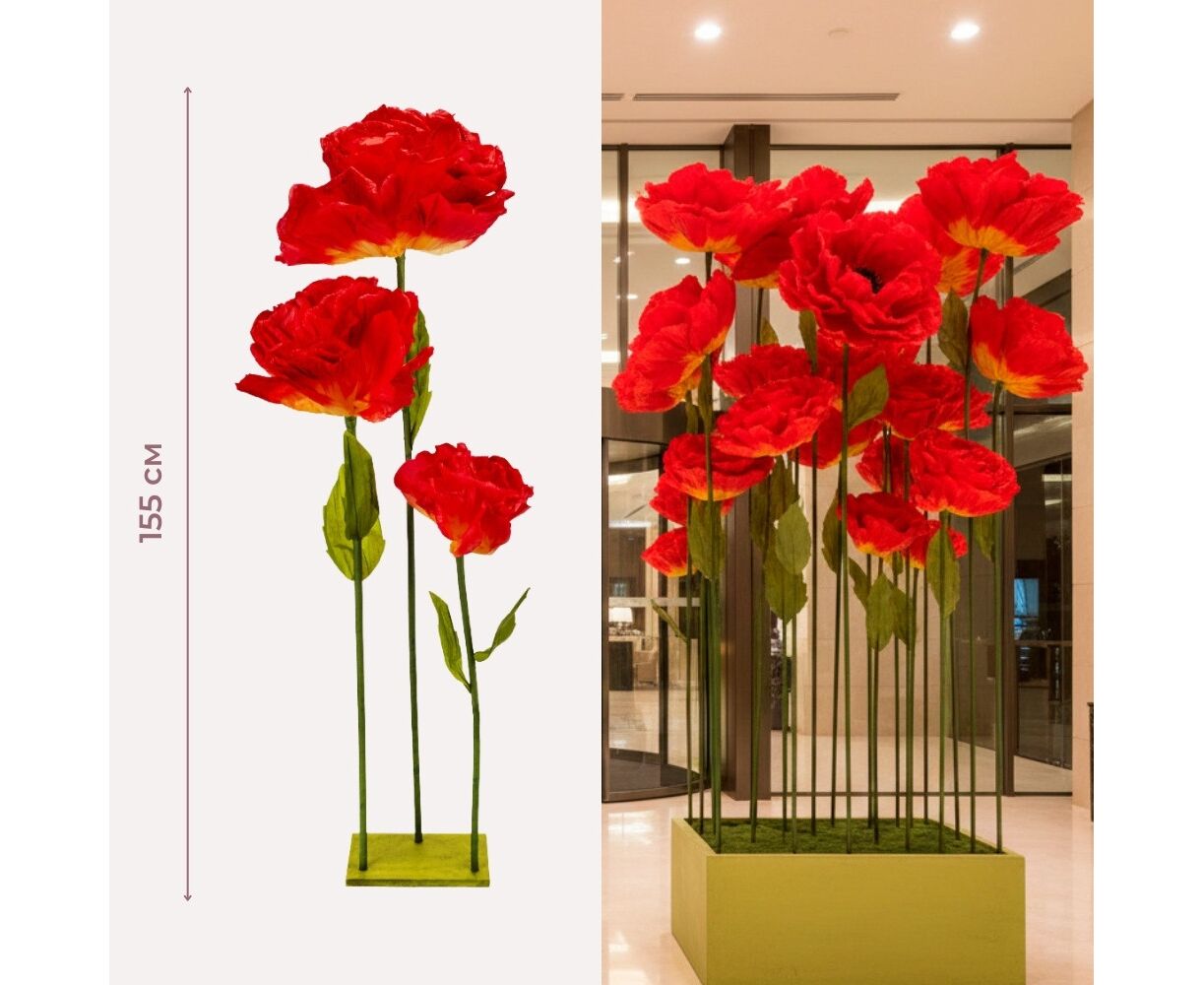 Большие ростовые декоративные цветы на стойке, красные, 155 см