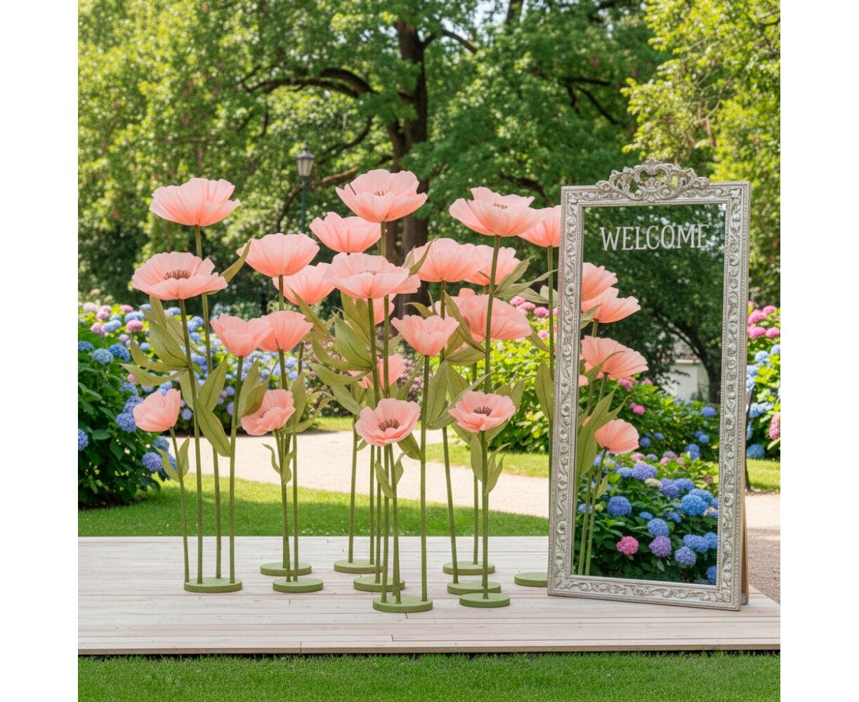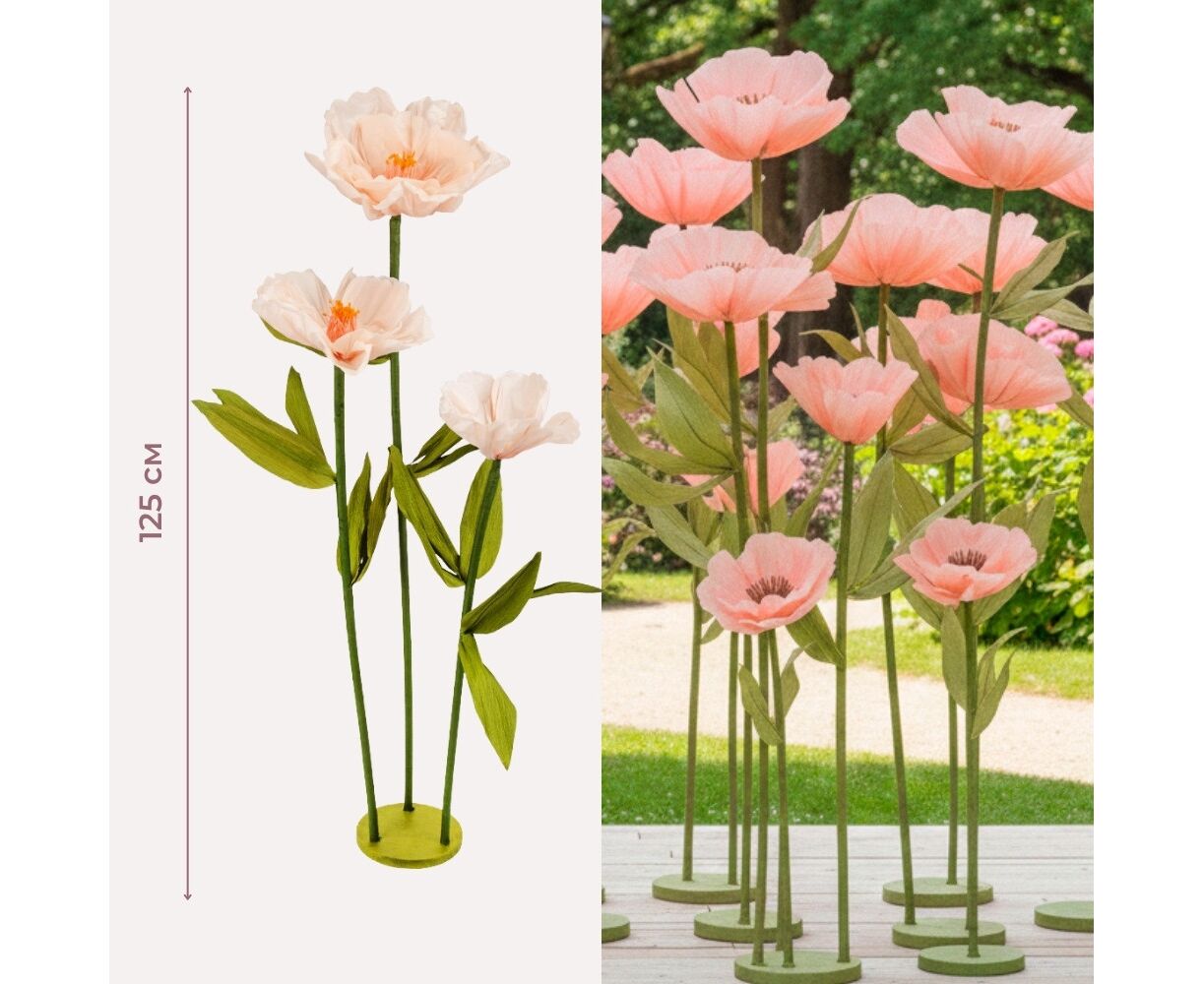 Большие ростовые декоративные цветы на стойке, пудровые, 125 см