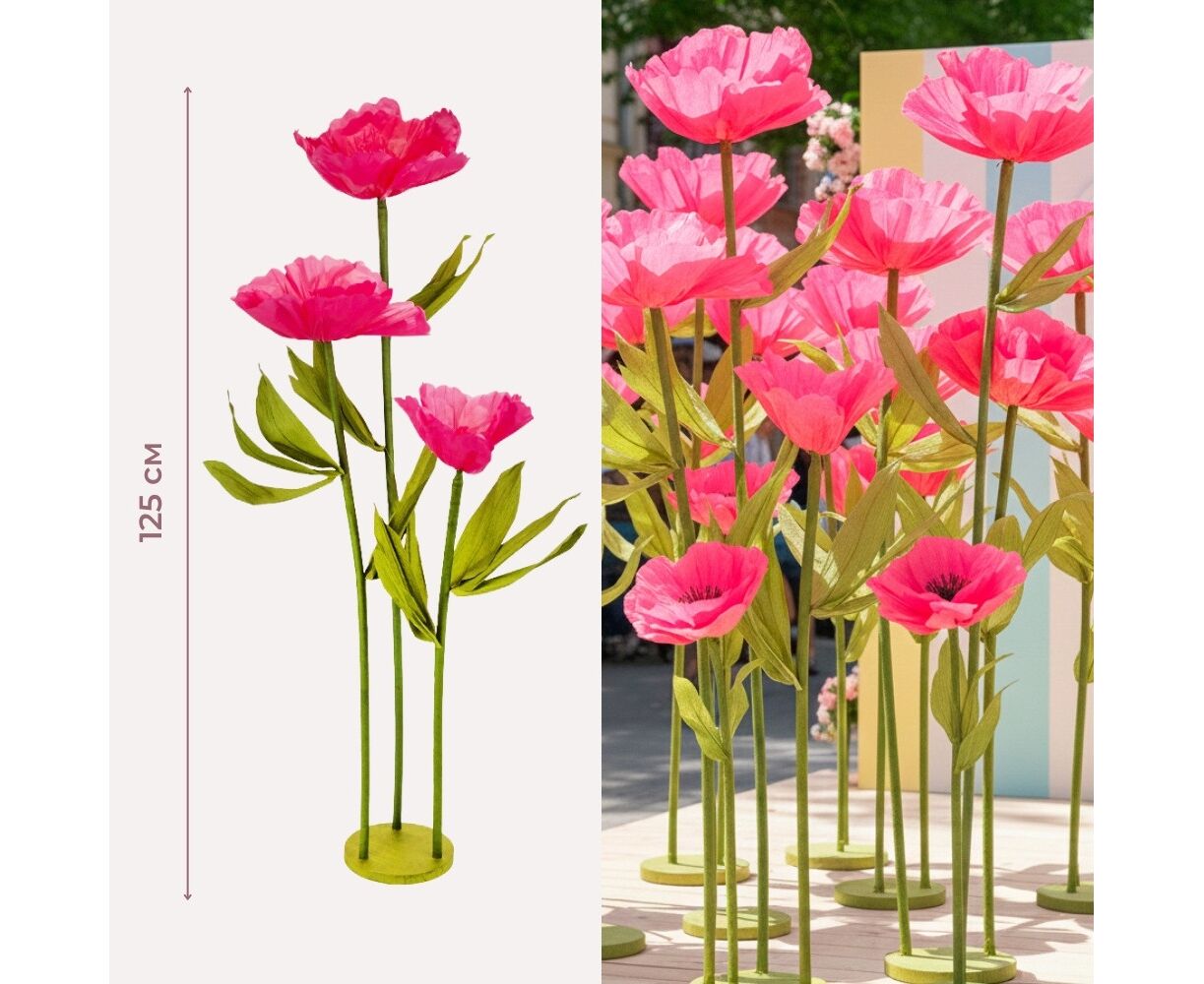 Большие ростовые декоративные цветы на стойке, розовые, 125 см