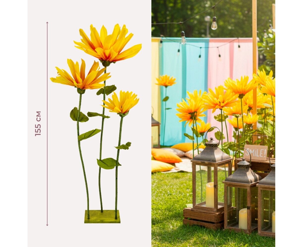 Большие ростовые декоративные цветы на стойке, желтые, 155 см