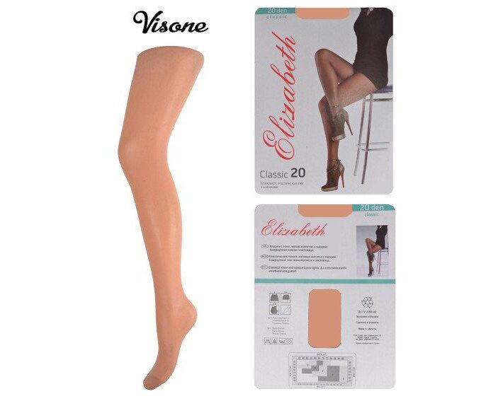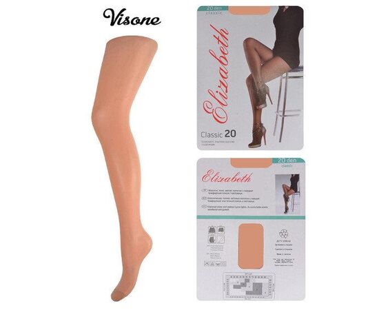 Колготки Elizabeth 20 den classic Бежевый р.3 (Арт. 00113) Классические, тонкие, матовые колготки с лайкрой. Комфортный эластичный поясок и ластовица. Размеры — 3 Цвет — Visone ( телесный ) Количество изделий в упаковке — 5 шт. ( Одного цвета, одного размера ) В ящике — 50 шт. ( Одного цвета, одного размера ) Женские колготки 20 ден классика, в конверте, эластичный пояс и ластовица. Предоставляем вашему вниманию ассортимент товара: