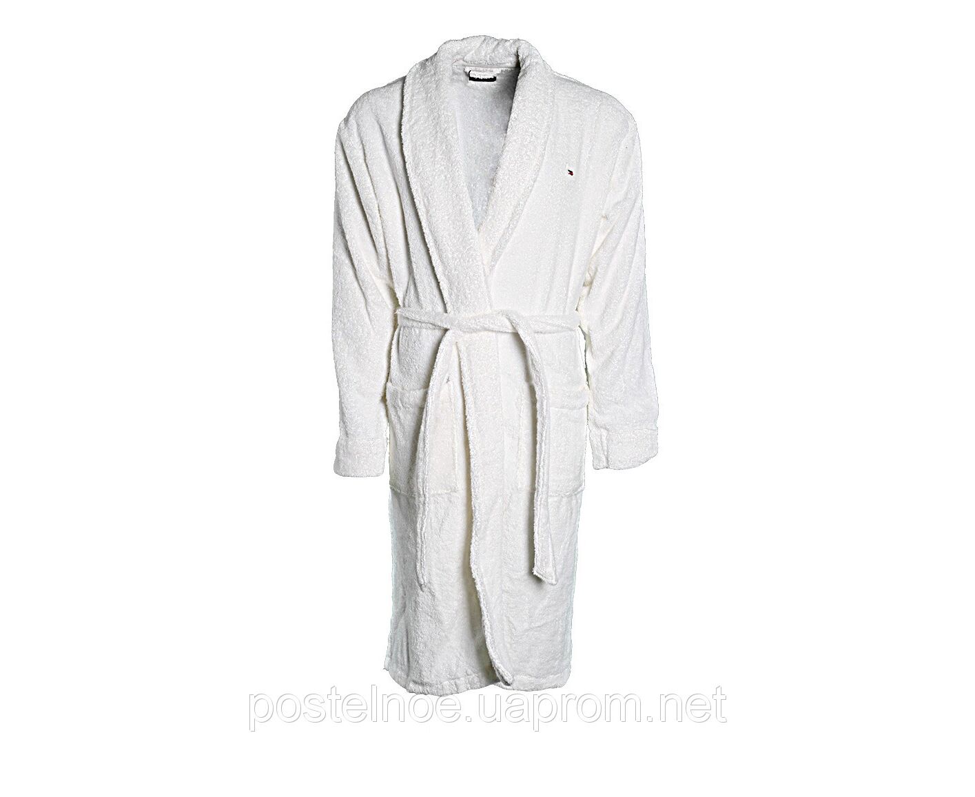 Белые махровые халаты, производство Турция. Хала́т (араб. ‎‎и перс. خلعت‎) — домашняя или рабочая (у многих народов Азии — верхняя) длиннополая одежда, запахивающаяся или застёгивающаяся сверху донизу, обычно из хлопчатобумажной ткани. Арабское слово خلعت (хилат) означает «одежда». Махровая ткань (или «ткань фроте́»[фротэ́]) от франц. frottèe — «тертый» , просторечное название — «махра») — это натуральная ткань, поверхность которой состоит из ворса (петель основных нитей). Ворс может быть как одинарным (односторонним), так и двойным (двусторонним). Кроме односторонней и двухсторонней, различают также ткань с рельефным рисунком в структуре махры и ткань со стриженным ворсом (стриженная махра). Свойства махровой ткани Махровые ткани обычно менее плотны, чем ворсовые. В отличие от чисто ворсовых, ворс у них возникает за счет свободной подачи петель неплотно натянутой основы, отчего они и получаются, как правило, менее стойкими и равномерными. Однако эта особенность ничуть не портит характерные качества махровой ткани, а наоборот — придает ей неповторимую природную особенность «свободного дыхания». Также они обладают легким масажным воздействием на тело человека и не вызывают раздражения кожи. Благодаря своим уникальным естественным качествам и способности хорошо поглощать влагу, позволяя телу свободно дышать, махровые ткани используются для изготовления халатов, полотенец, домашних тапочек, постельного белья, купальных простыней, ортопедических стелек, матрасов и подушек, различных чехлов для постельных и иных индивидуальных принадлежностей, а также — женских прокладок нового поколения. Махровые ткани различаются по типу плотности, кручения нити и высоты петли, так как именно от них зависит внешний вид и качество махрового изделия. Плотность махровых материй измеряется в граммах на квадратный метр и колеблется от 300 до 800 единиц. Чем выше плотность — тем пушистее изделие из фроте. В махровых изделиях не допустимо чрезмерное присутствие искусственных волокон, поскольку все они, в силу своей принадлежности к индивидуальному туалету, предназначены для стирки при высоких температурах, чего не способны вынести синтетические добавки. Единственно возможное отклонение в отношении производства махровой ткани — примесь полиэстеровой нити при изготовлении основы полотна. Являясь природным материалом, ткань фроте быстро мнется. Немнущиеся махровые ткани производятся с добавлением химических волокон в соотношении не более 20 процентов искусственных материалов (полиэстера) на 80 процентов натурального компонента. Изделия из махровых тканей особо рекомендуемы для аллергиков. Ткань легко поддается стирке и после многократных операций остается по-прежнему пушистой и мягкой, не нанося вреда здоровью человека. Предоставляем вашему вниманию ассортимент товара: