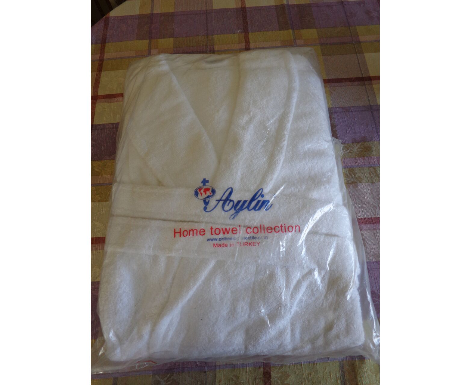 Белые махровые халаты, производство Турция. Хала́т (араб. и перс. خلعت) — домашняя или рабочая (у многих народов Азии — верхняя) длиннополая одежда, запахивающаяся или застёгивающаяся сверху донизу, обычно из хлопчатобумажной ткани. Арабское слово خلعت (хилат) означает «одежда». Махровая ткань (или «ткань фроте́»[фротэ́]) от франц. frottèe — «тертый» , просторечное название — «махра») — это натуральная ткань, поверхность которой состоит из ворса (петель основных нитей). Ворс может быть как одинарным (односторонним), так и двойным (двусторонним). Кроме односторонней и двухсторонней, различают также ткань с рельефным рисунком в структуре махры и ткань со стриженным ворсом (стриженная махра). Свойства махровой ткани Махровые ткани обычно менее плотны, чем ворсовые. В отличие от чисто ворсовых, ворс у них возникает за счет свободной подачи петель неплотно натянутой основы, отчего они и получаются, как правило, менее стойкими и равномерными. Однако эта особенность ничуть не портит характерные качества махровой ткани, а наоборот — придает ей неповторимую природную особенность «свободного дыхания». Также они обладают легким масажным воздействием на тело человека и не вызывают раздражения кожи. Благодаря своим уникальным естественным качествам и способности хорошо поглощать влагу, позволяя телу свободно дышать, махровые ткани используются для изготовления халатов, полотенец, домашних тапочек, постельного белья, купальных простыней, ортопедических стелек, матрасов и подушек, различных чехлов для постельных и иных индивидуальных принадлежностей, а также — женских прокладок нового поколения. Махровые ткани различаются по типу плотности, кручения нити и высоты петли, так как именно от них зависит внешний вид и качество махрового изделия. Плотность махровых материй измеряется в граммах на квадратный метр и колеблется от 300 до 800 единиц. Чем выше плотность — тем пушистее изделие из фроте. В махровых изделиях не допустимо чрезмерное присутствие искусственных волокон, поскольку все они, в силу своей принадлежности к индивидуальному туалету, предназначены для стирки при высоких температурах, чего не способны вынести синтетические добавки. Единственно возможное отклонение в отношении производства махровой ткани — примесь полиэстеровой нити при изготовлении основы полотна. Являясь природным материалом, ткань фроте быстро мнется. Немнущиеся махровые ткани производятся с добавлением химических волокон в соотношении не более 20 процентов искусственных материалов (полиэстера) на 80 процентов натурального компонента. Изделия из махровых тканей особо рекомендуемы для аллергиков. Ткань легко поддается стирке и после многократных операций остается по-прежнему пушистой и мягкой, не нанося вреда здоровью человека. Предоставляем вашему вниманию ассортимент товара: