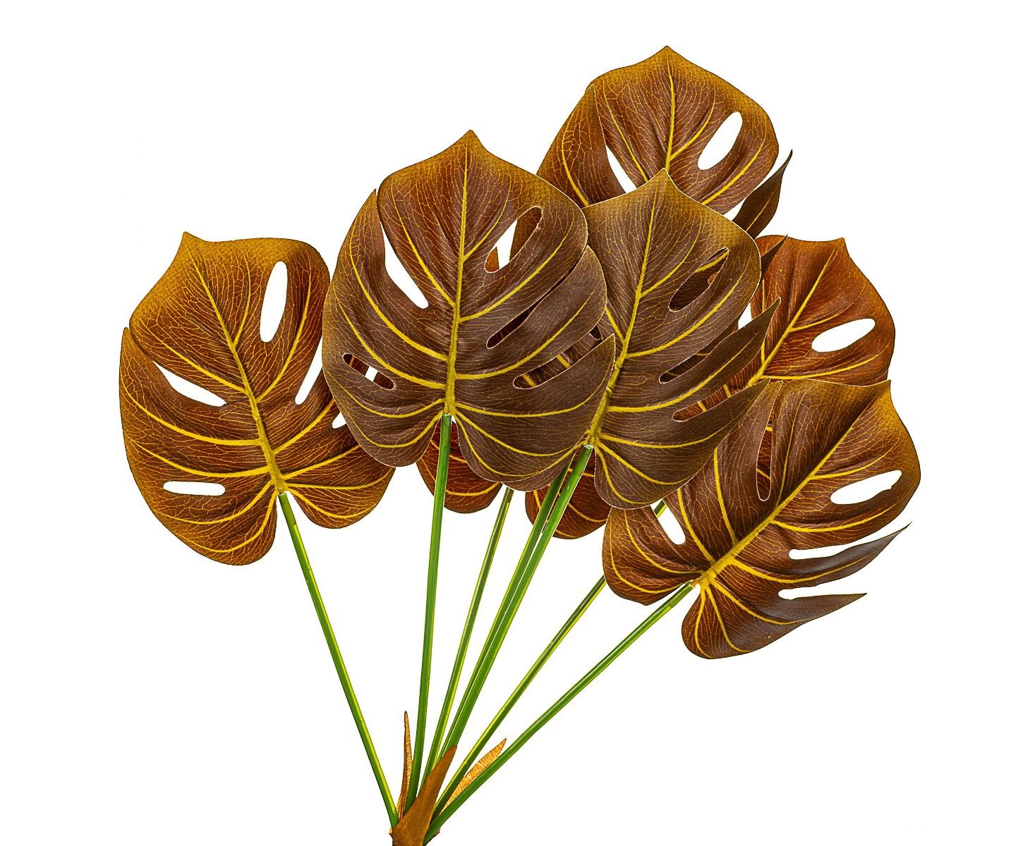 Ветвь монстеры желто-коричневая искусственная
