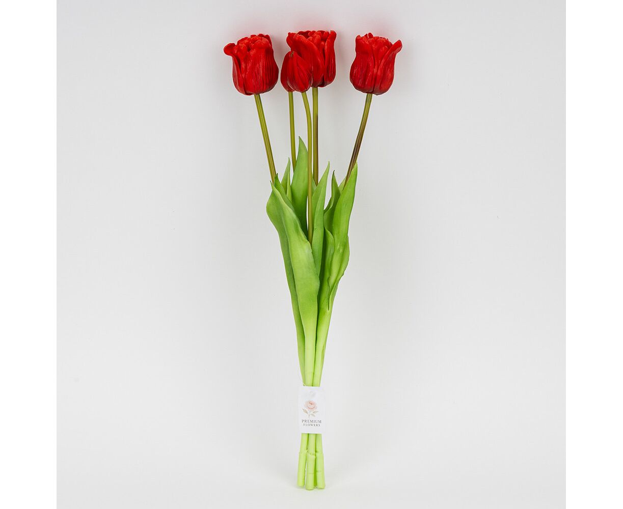 Букет латексных тюльпанов, 5 бутонов, красный, 49 см