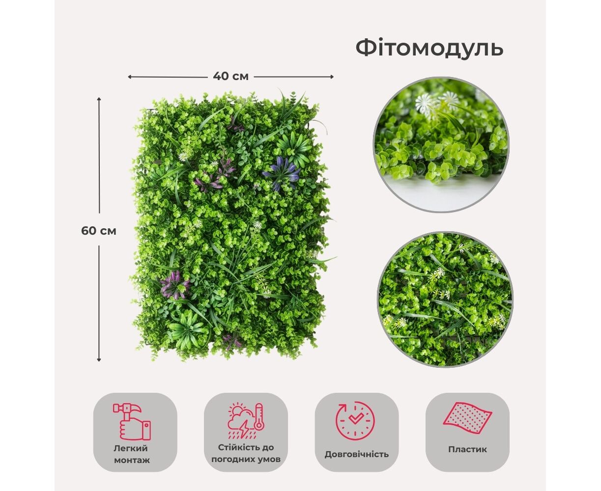 Фитомодуль искусственный "Цветочный микс", 40*60 cм