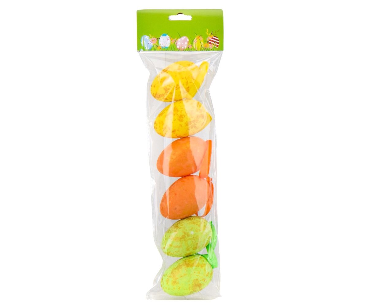 Длина пасхальных яиц - 6 см, с лентой - 13 см. В наборе 6 шт. Набор цветных пасхальных яиц - это не только стильный элемент декора, но и прекрасный способ создать праздничное настроение. Изготовленные из пластика, эти пасхальные яйца имеют яркие и насыщенные цвета. Легкие в уходе и очень практичные, они станут отличным дополнением к пасхальному декору в кафе, фотостудиях, витринах магазинов или дома!