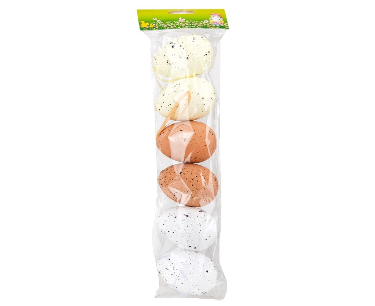 Длина пасхальных яиц - 7 см, с лентой - 13,5 см. В наборе 6 шт. Набор цветных пасхальных яиц - это не только стильный элемент декора, но и прекрасный способ создать праздничное настроение. Изготовленные из пластика, эти пасхальные яйца имеют яркие и насыщенные цвета. Легкие в уходе и очень практичные, они станут отличным дополнением к пасхальному декору в кафе, фотостудиях, витринах магазинов или дома!