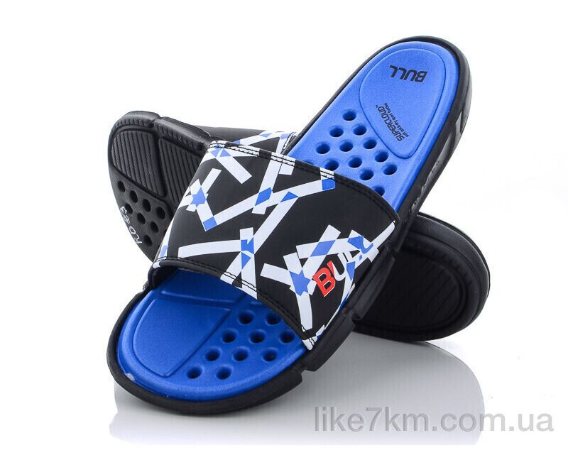 Шлепанцы мужские Лето R023 black-blue (6 пар р.40-45) "Obuvok" оптом со склада 7км