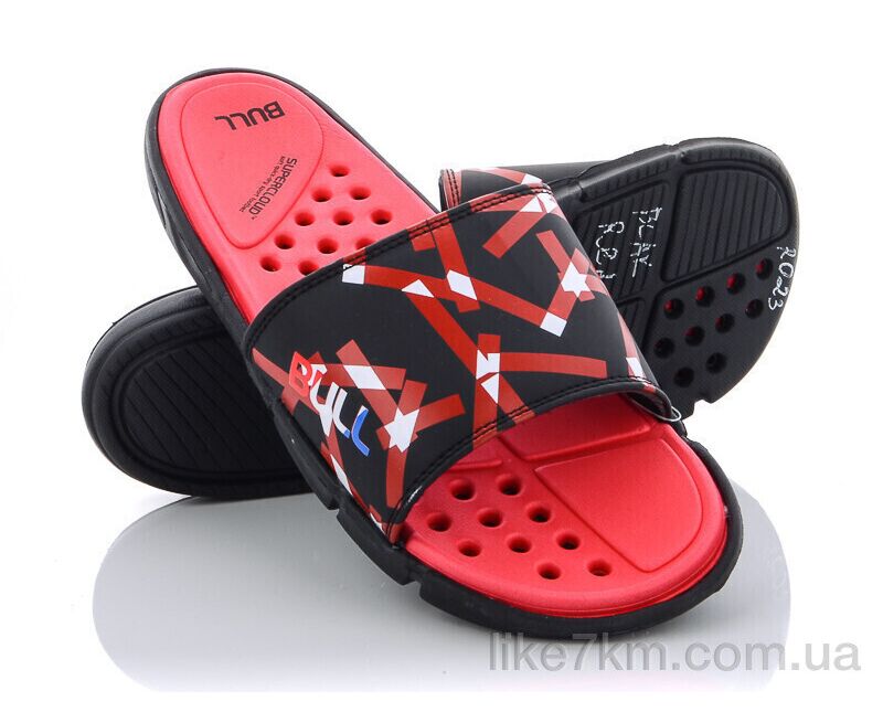 Шлепанцы мужские Лето R023 black-red (6 пар р.40-45) "Obuvok" оптом со склада 7км