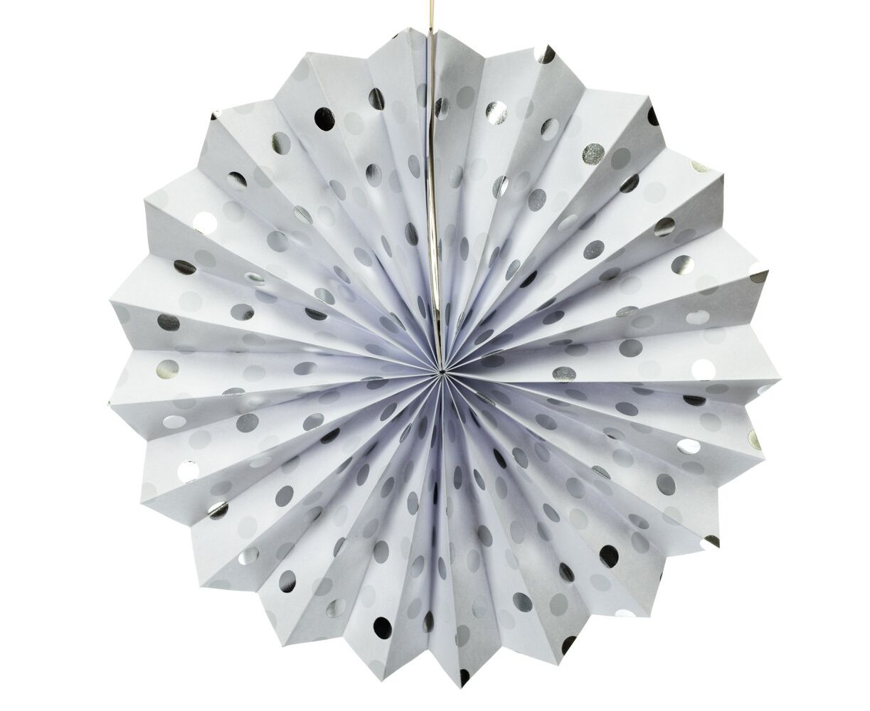 Набор з 8 бумажных вееров ,белый в серебрянный горох