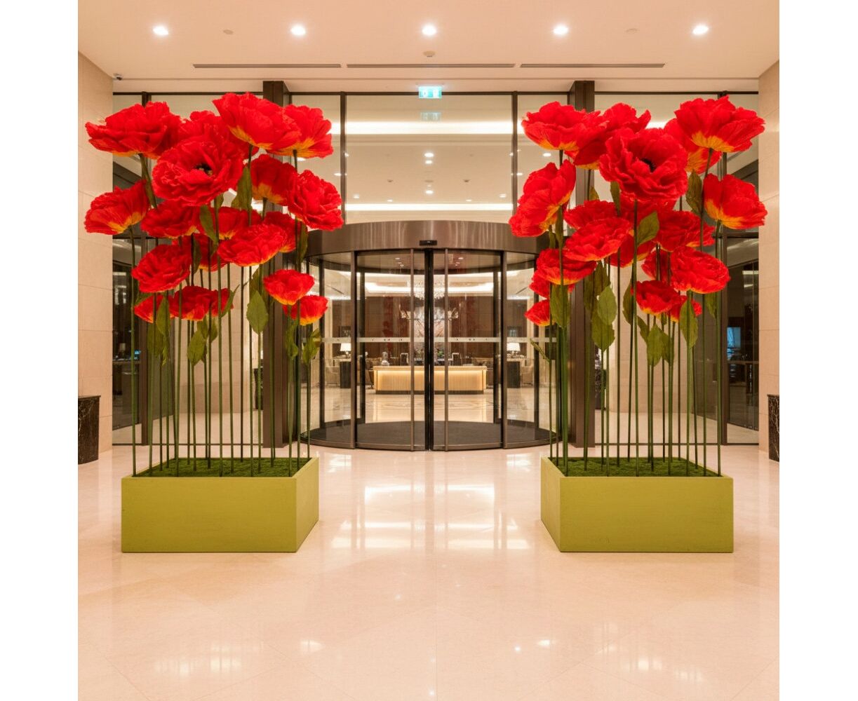 Большие ростовые декоративные цветы на стойке, красные, 155 см