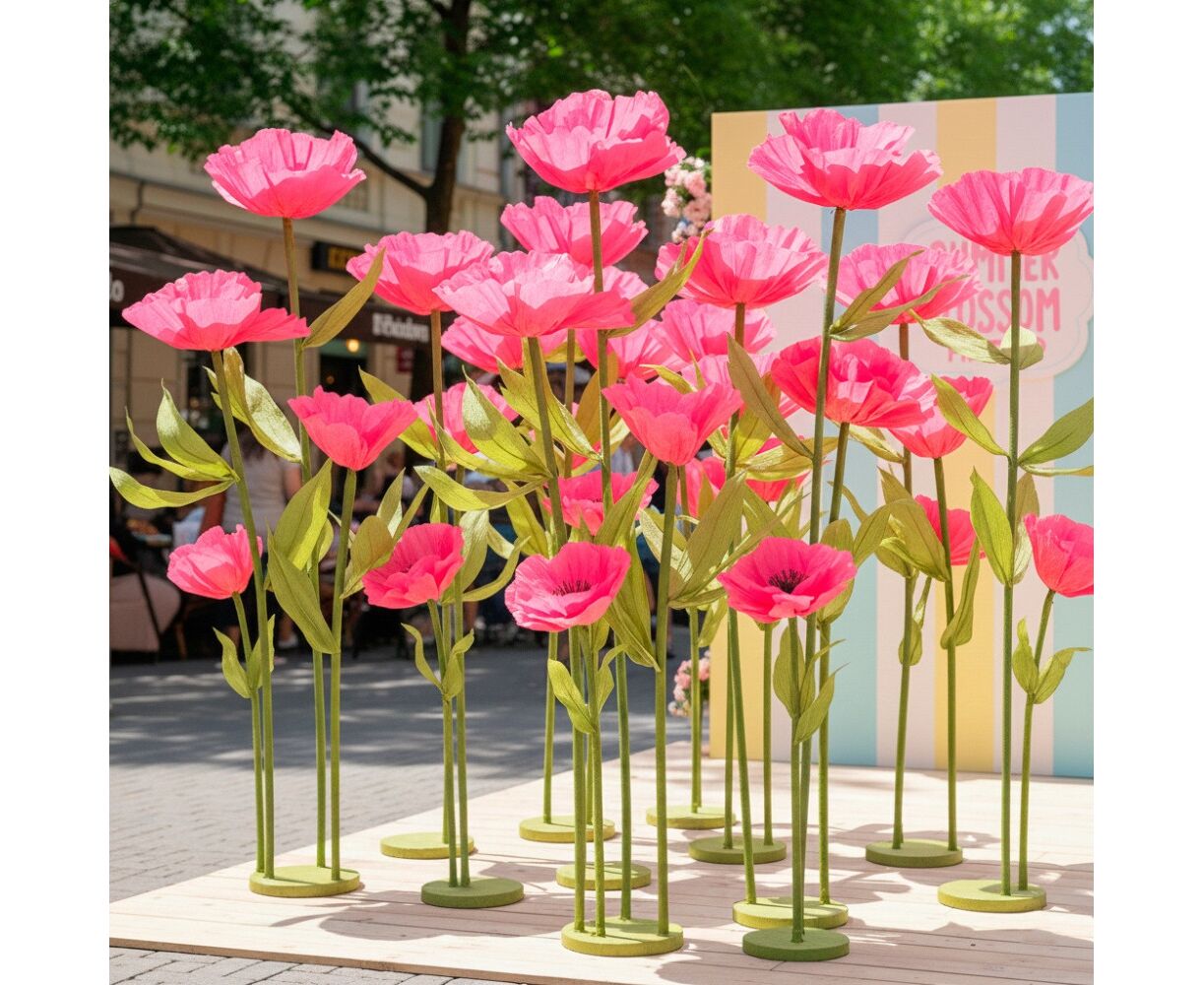 Большие ростовые декоративные цветы на стойке, розовые, 125 см