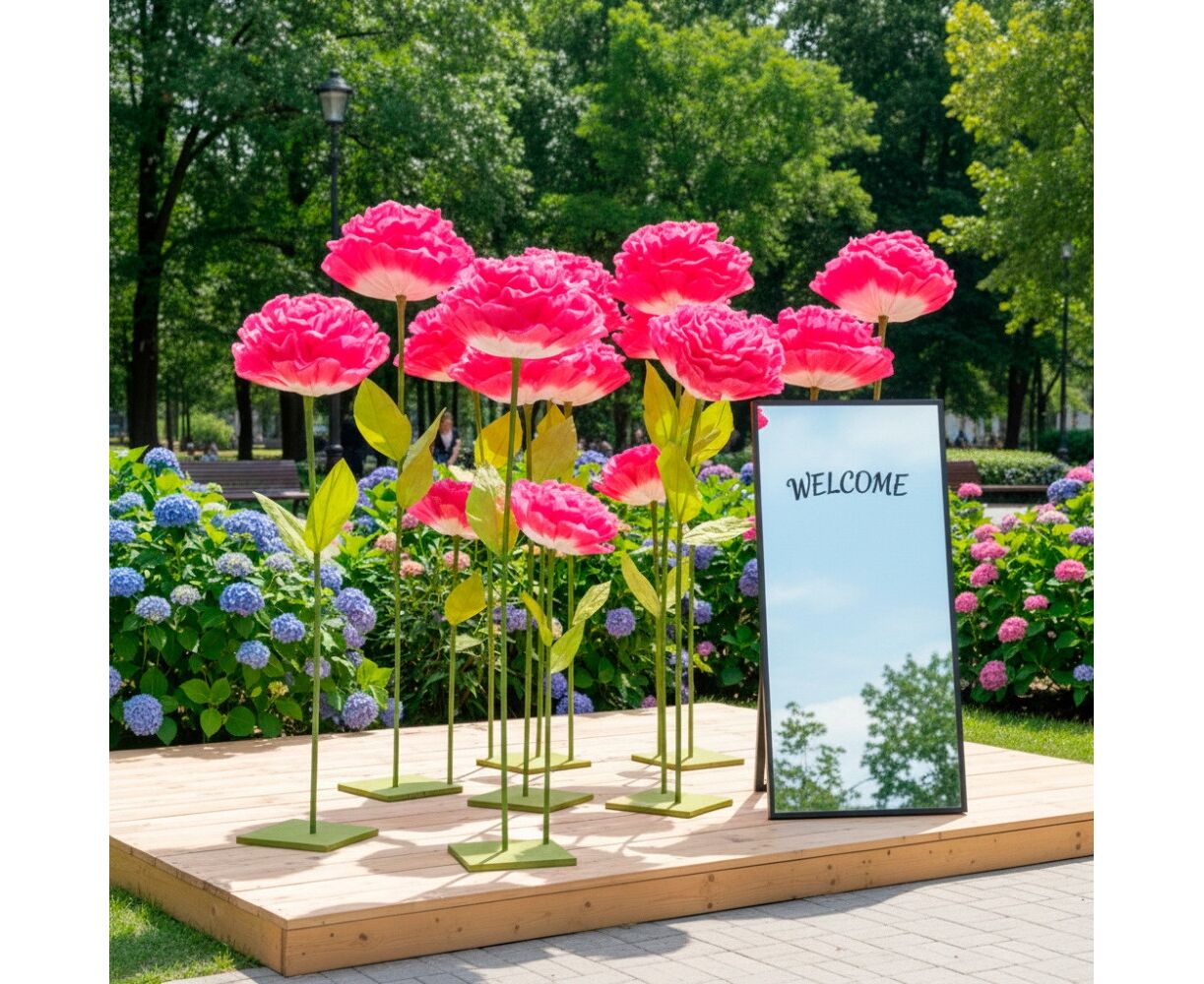 Большие ростовые декоративные цветы на стойке, розовые, 155 см