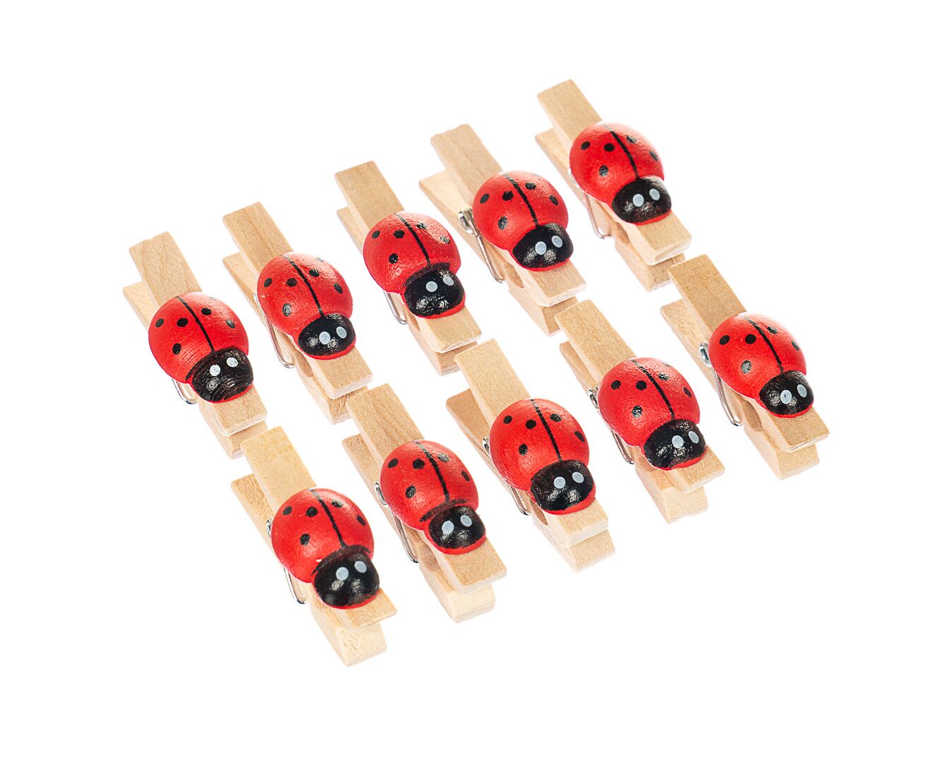 Набор прищепок "Божья коровка" станет незаменимым помощником для любителей создавать подарки своими руками. Благодаря им, можно легко и со вкусом украсить флористическую композицию, придать изюминку подарочной упаковке. Очень популярно сейчас использовать их в качестве декора для ярких и незабываемых фотосессий на природе, в студии. Прищепки изготовлены из дерева, что подчеркивает их универсальное применение. В упаковке 10 штук.