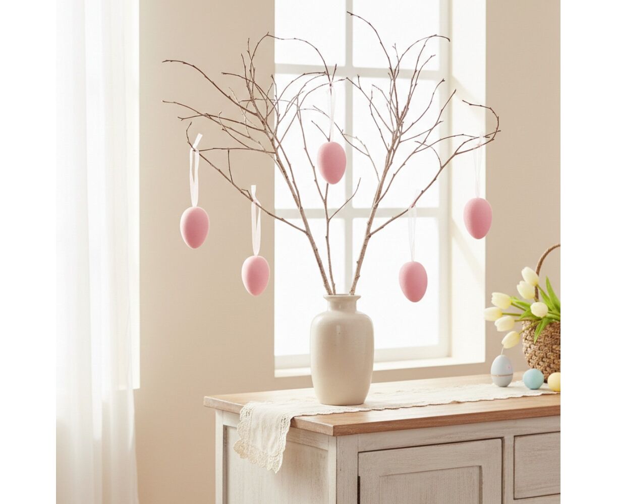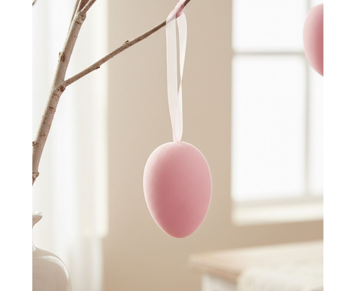 Набор из 5 подвесных флоковых крашанок, розовый, 7 см