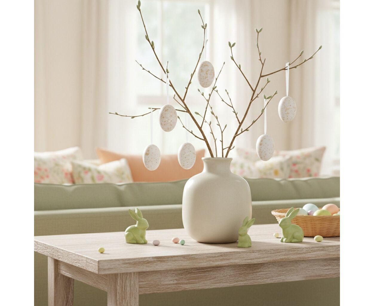 Высота: 6 Материал: Флок Ширина: 4 Набор из 6 подвесных флоковых пасхальных яиц высотой 6 см, с подвеской - 12 см. Это стильный элемент пасхального декора для оформления интерьеров, витрин, праздничных композиций и фотозон. Бархатная флоковая поверхность придает изделиям...
