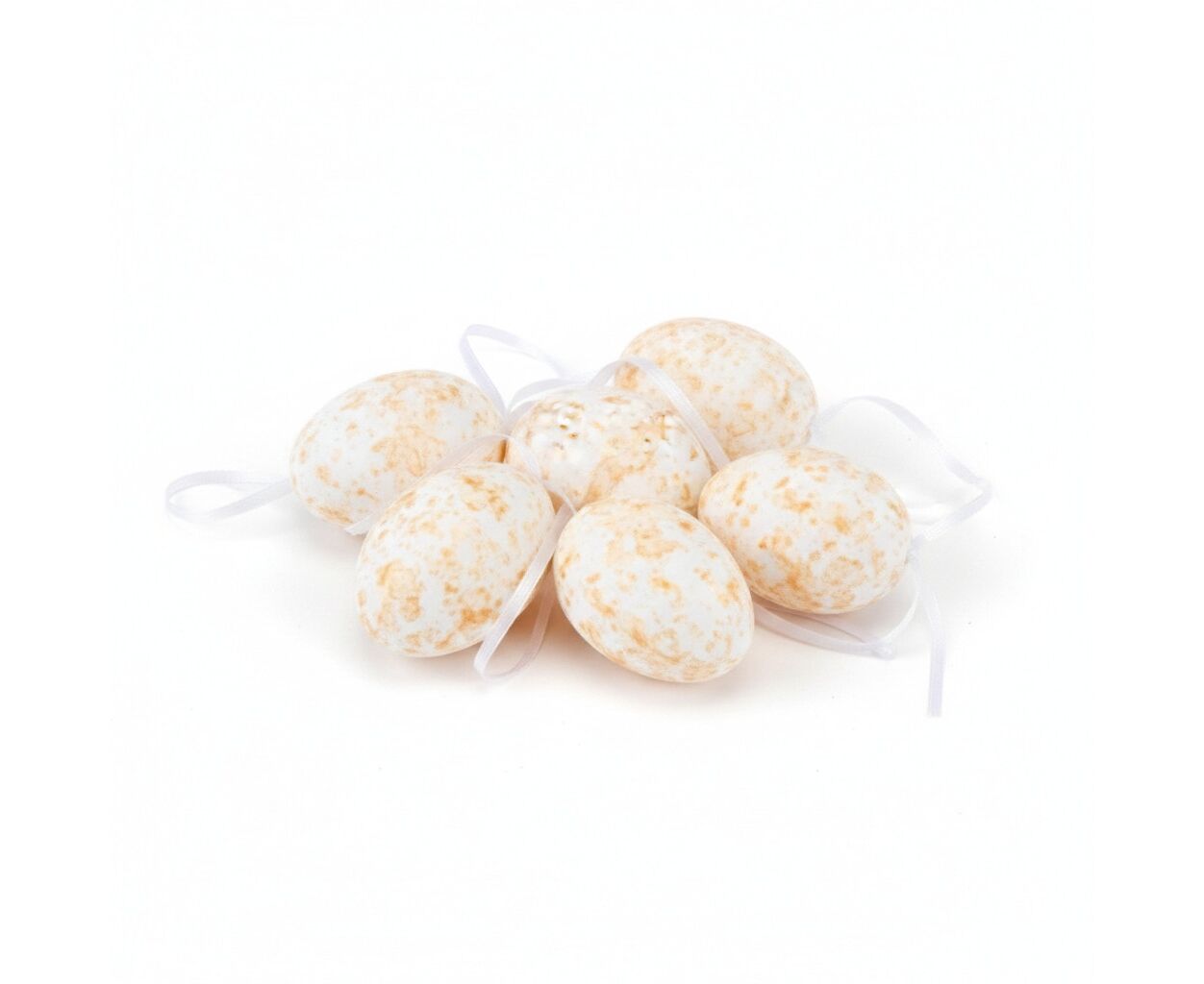 Длина пасхальных яиц - 6 см, с лентой - 13 см. В наборе 6 шт. Набор цветных пасхальных яиц - это не только стильный элемент декора, но и прекрасный способ создать праздничное настроение. Изготовленные из пластика, эти пасхальные яйца имеют яркие и насыщенные цвета. Легкие в уходе и очень практичные, они станут отличным дополнением к пасхальному декору в кафе, фотостудиях, витринах магазинов или дома!