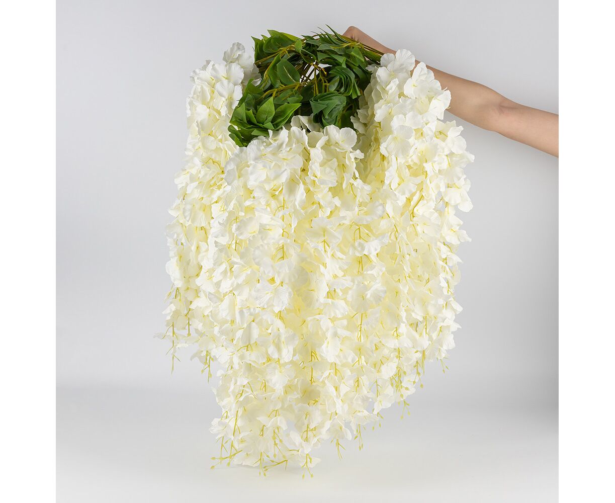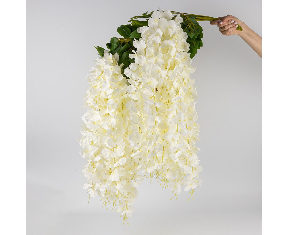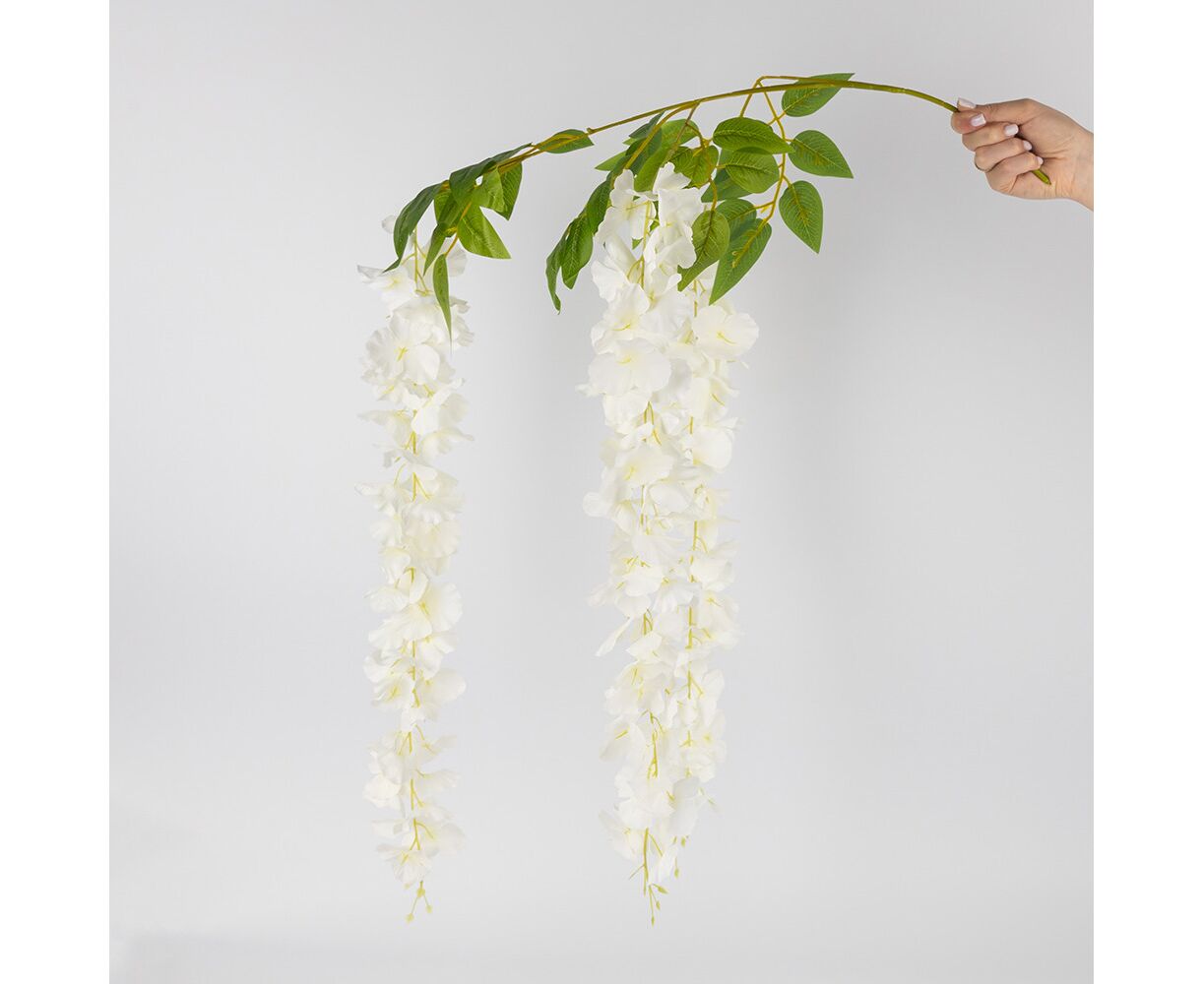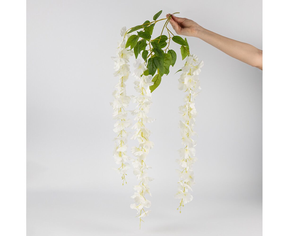 Искусственная свисающая ветвь "Глициния", белая, 110 см