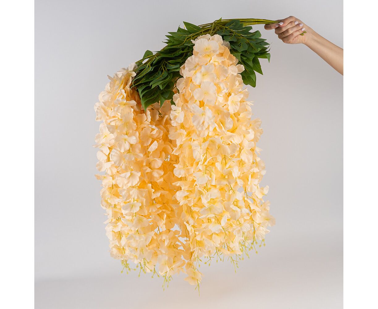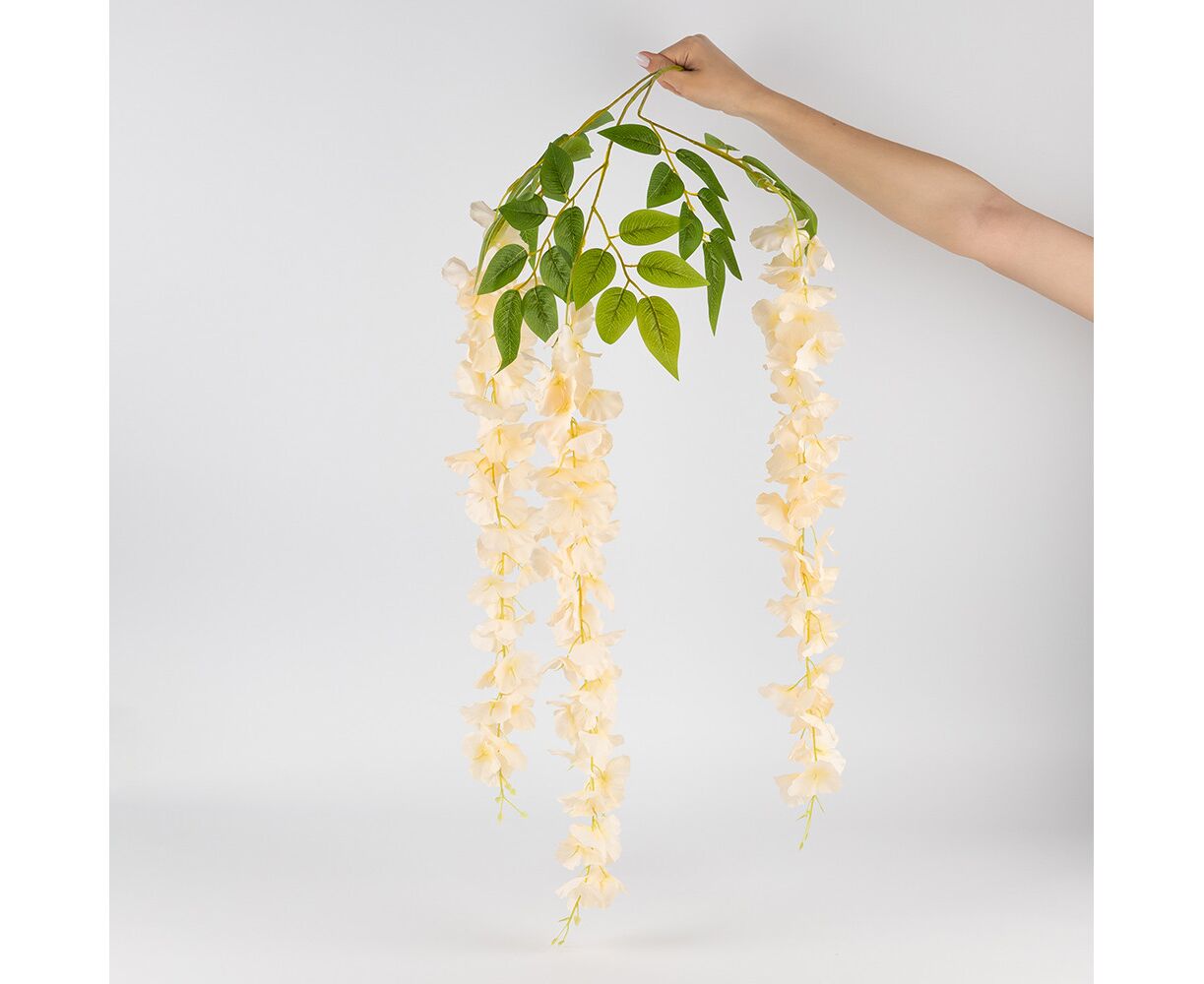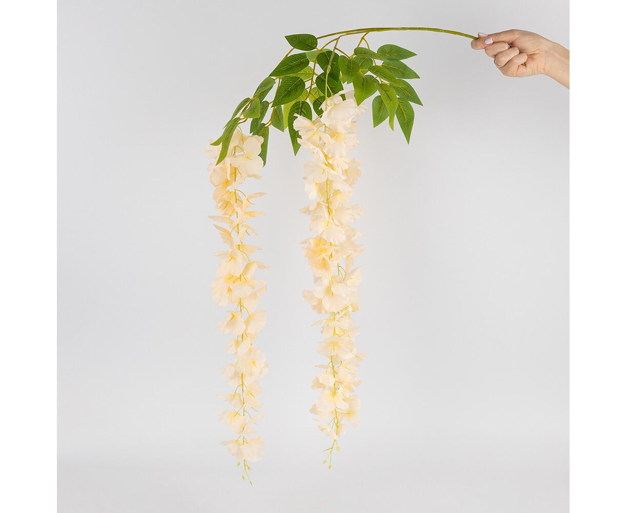Искусственная свисающая ветвь "Глициния", кремовая, 110 см