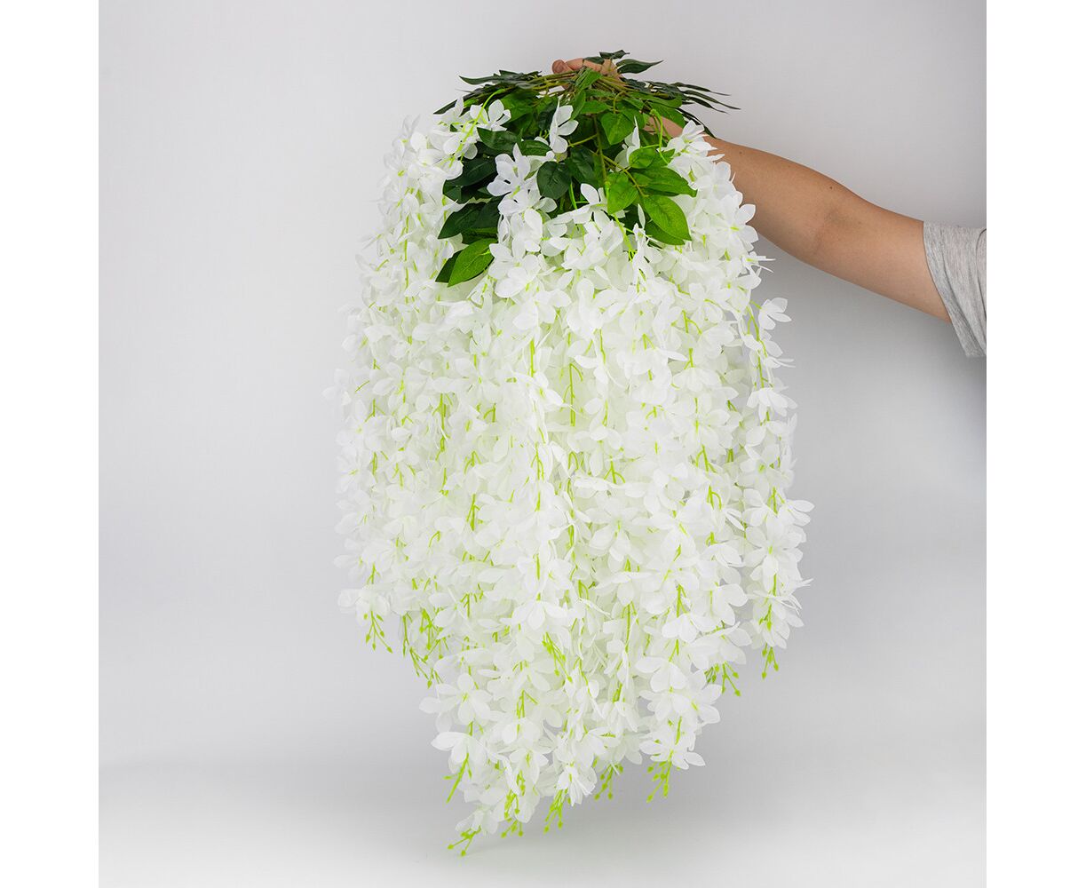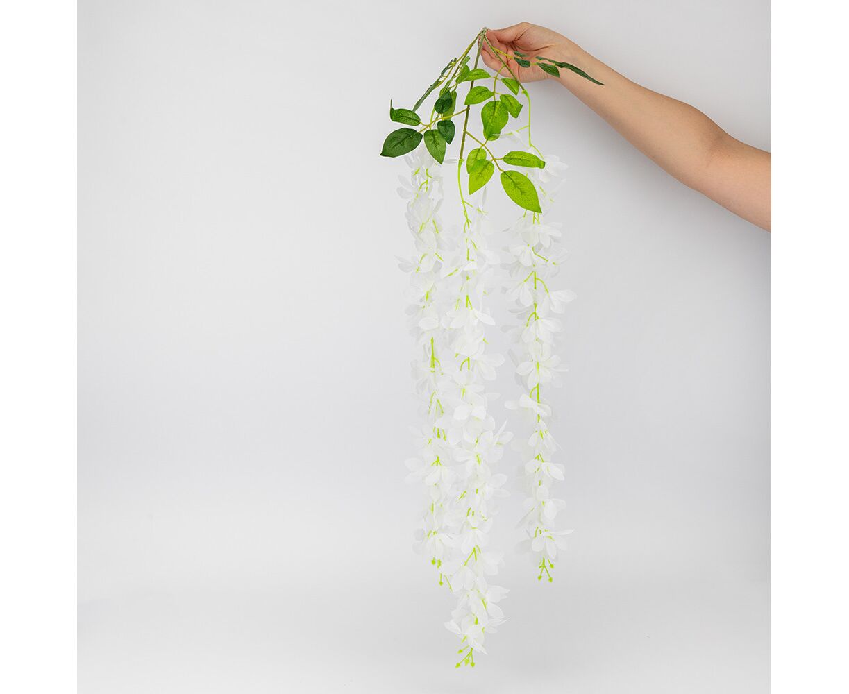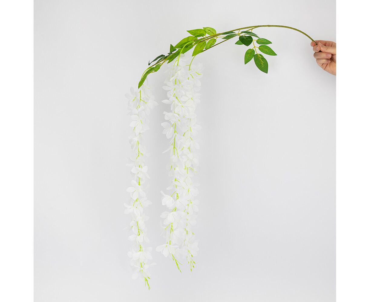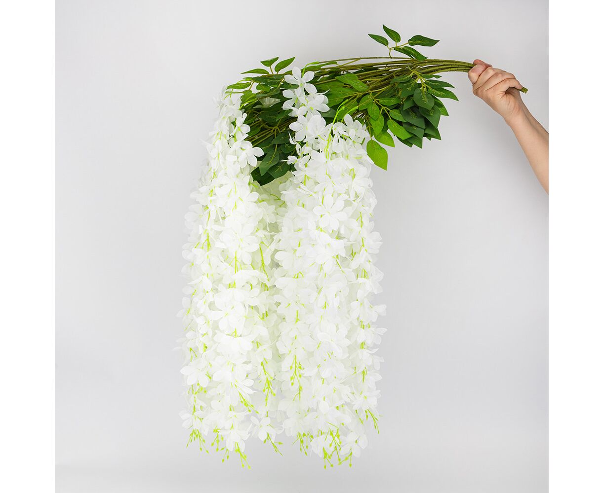 Набор из 12 свисающих веток "Глициния белая", 103 см