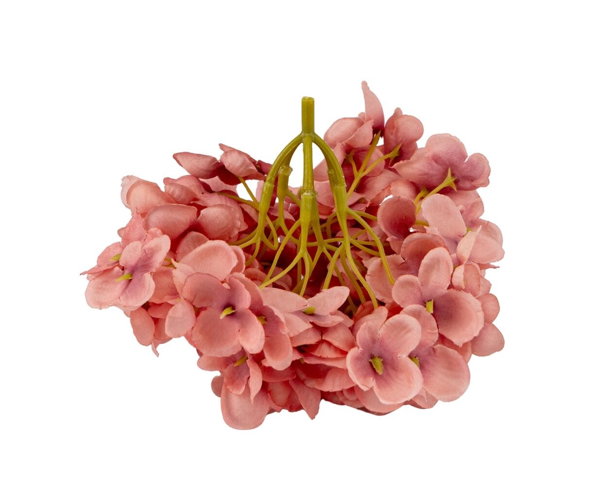Диаметр – 14 см, высота – 10 см. Искусственная головка мелкоцветковой гортензии из нежного текстиля – это идеальное решение для флористов, декораторов и HORECA-сегмента. Богатый объем и природная фактура придают утонченность любому интерьеру или событию. Благодаря пластиковому хвостику ее удобно крепить к основаниям или композициям. Листья и бутон изготовлены из ткани, что создает максимально реалистичный вид. Идеально для оформления банкетов, фотозон, витрин и свадебного декора.