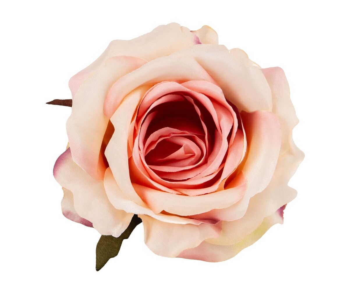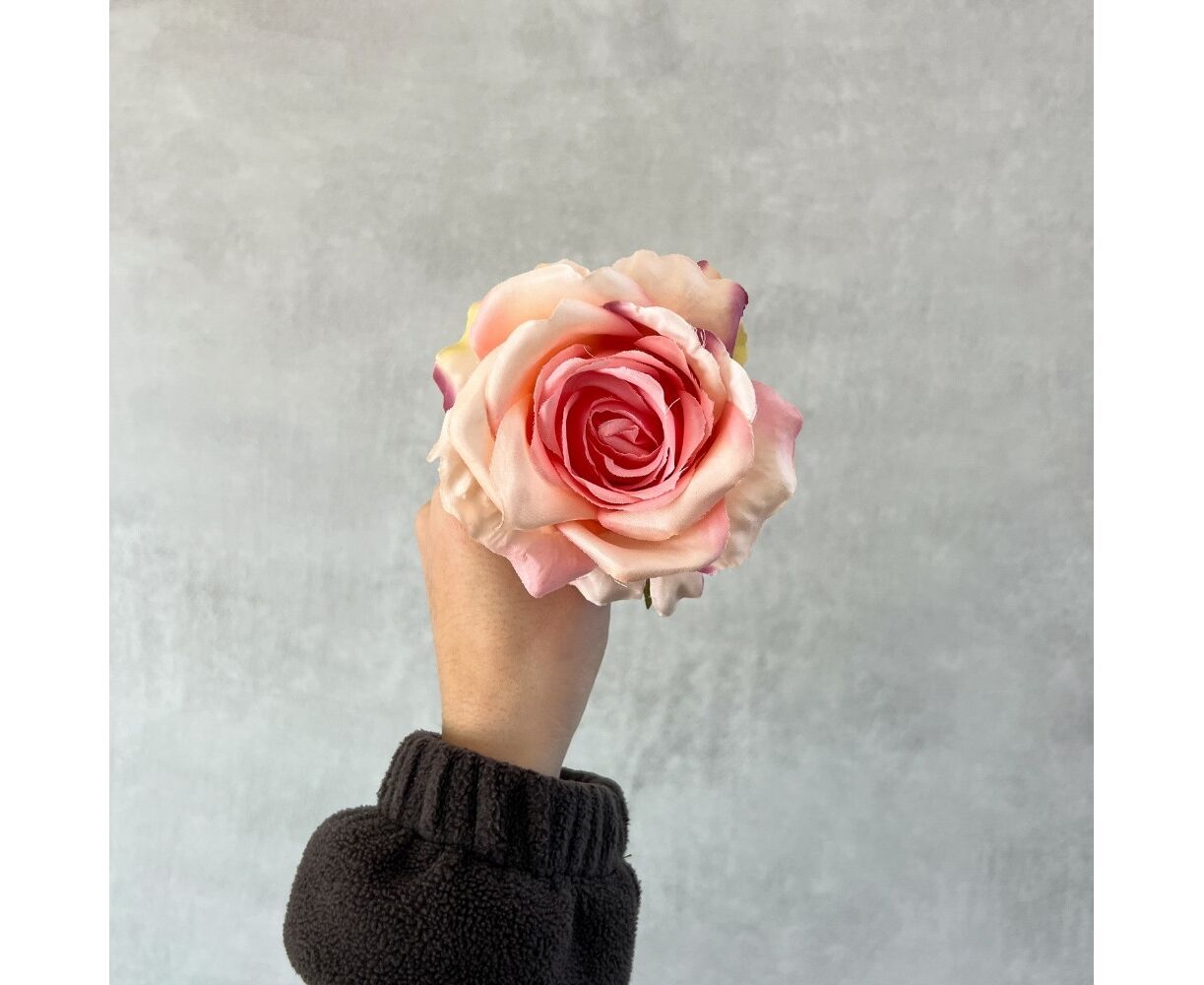Искусственная головка розы диаметром 9 см – элегантное декоративное решение для заведений и оформителей событий. Бутон изготовлен из качественной ткани, реалистично передающей текстуру лепестков. Обратная часть содержит пластиковый хвостик для легкого крепления, листья и основание также выполнены из ткани. Идеально подходит для флористических композиций, свадебного декора, сервировки столов или оформления интерьера. Легкая в использовании и долговечна, без необходимости ухода.