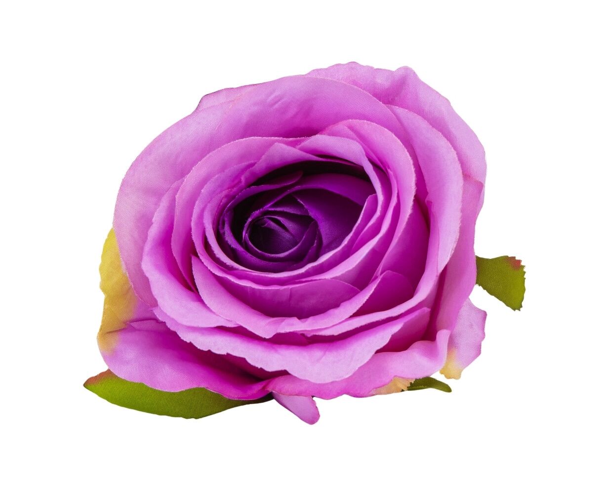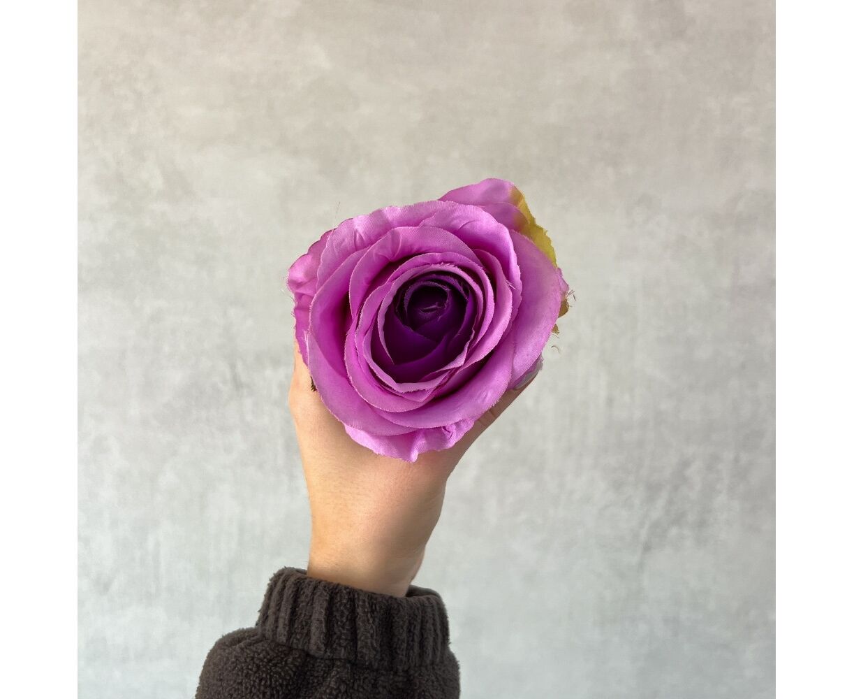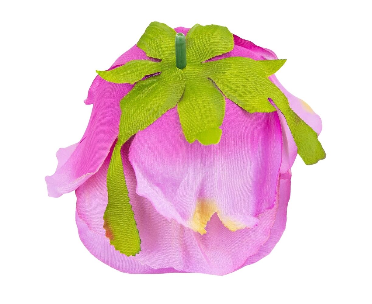 Искусственная головка розы диаметром 8 см изготовлена ​​из качественной ткани, имитирующей натуральные лепестки. Пластиковый хвостик позволяет удобно крепить бутон к разным поверхностям или декорациям.