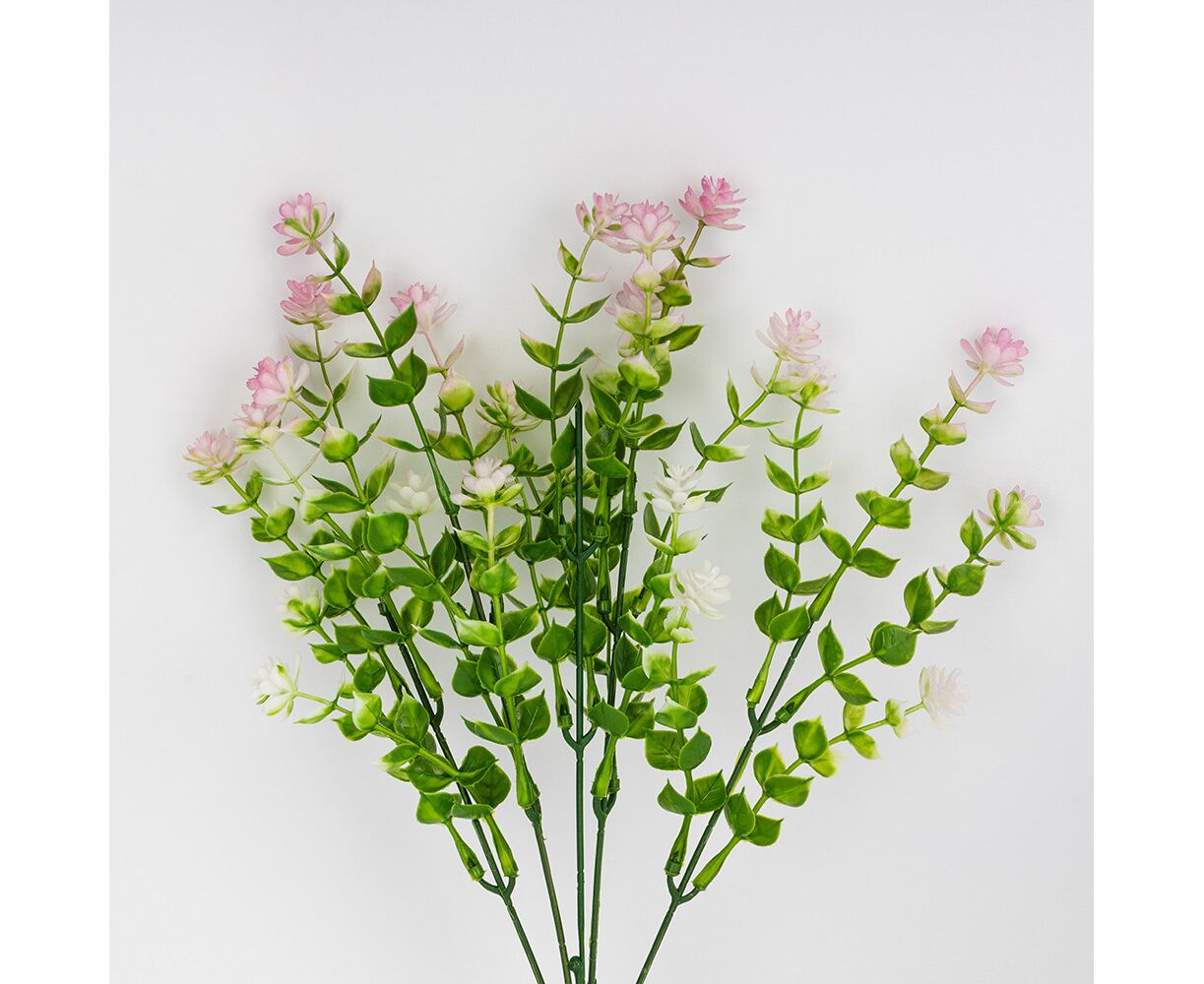Искусственная зеленая ветвь с розовыми соцветиями, 35 см