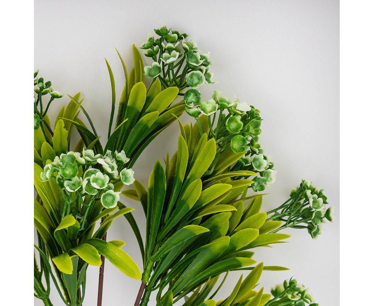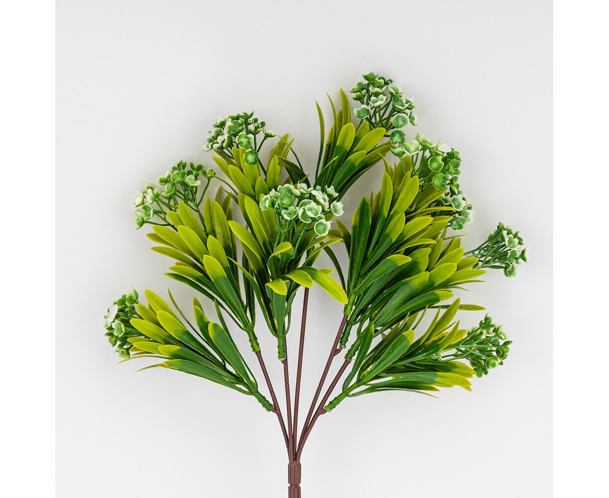 Искусственная зеленая ветвь с соцветиями, 35 см